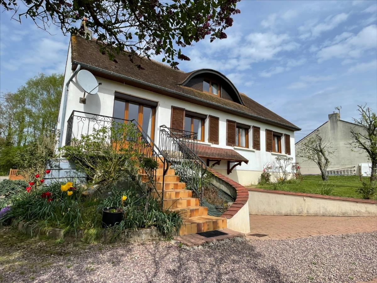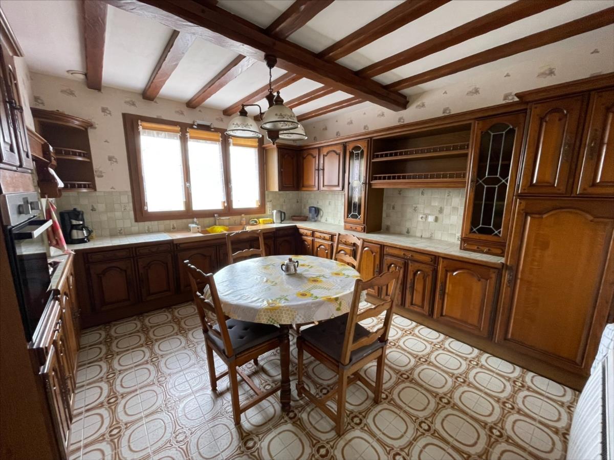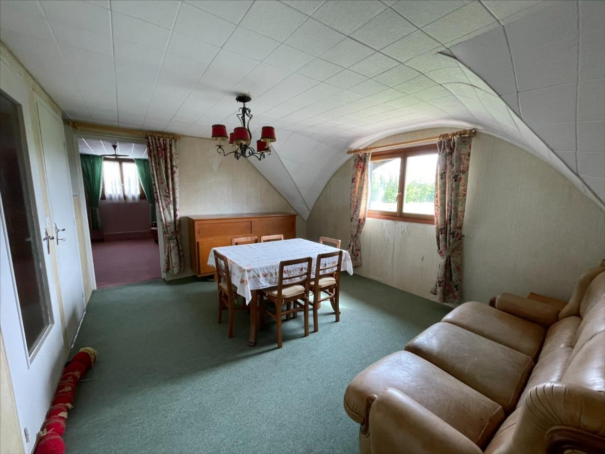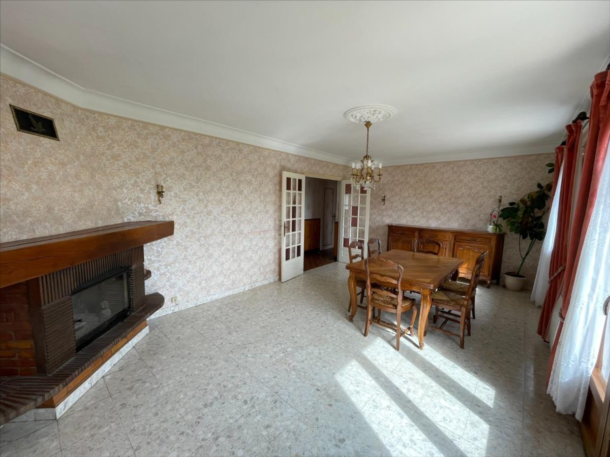 Une maison d'habitation individuelle d'une surface d'environ 142m², très bien entretenue sur Sous-sol complet (grand garage carrelé, porte motorisée, cave, lingerie, atelier)