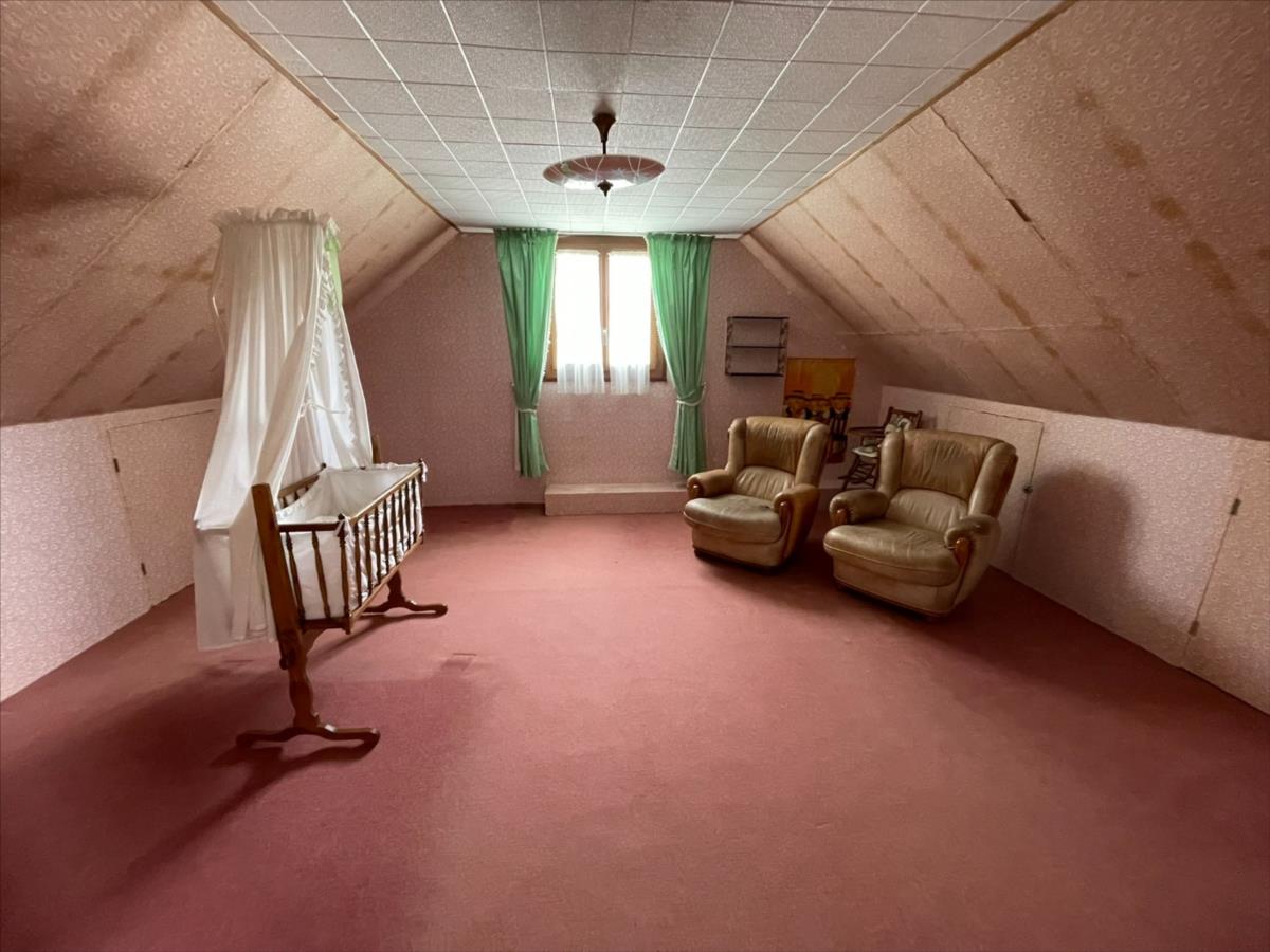A l 'étage : 2 Chambres (env 22-18 m²) salle de douche, wc et une pièce d'env 16 m² (ouverture à prévoir).