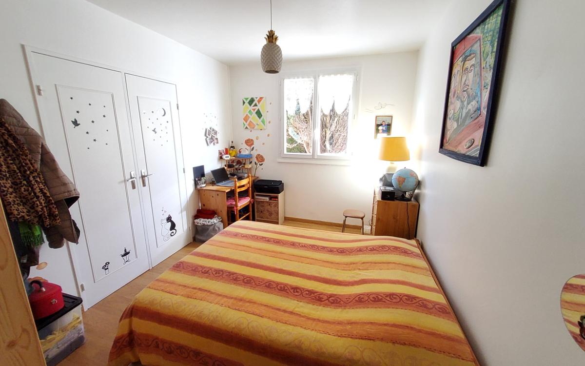 Entrée, séjour-salon avec poêle à granules récent, cuisine aménagée, salle de bains, wc, trois chambres, dégagement.