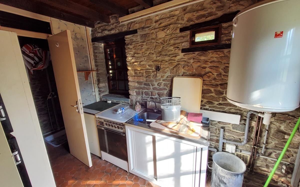 - au rez-de-chaussée : entrée, pièce à vivre comprenant salon avec cheminée et cuisine ouverte, salon avec cheminée insert, salle d'eau, wc, arrière cuisine, pièce au dessus.