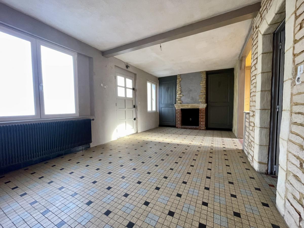 Crevecoeur en Auge Dans bourg avec commerces . Maison de ville de 112 m²  à rénover comprenant Au rez-de-chaussée : Séjour avec cheminée  ouvert sur cuisine ,  une salle de bains avec wc et chaufferie . A l'étage  palier desservant trois chambres dont deux en enfilade. Au second étage palier desservant deux chambres . Cour à l'arrière donnant sur un bâtiment à usage de cave