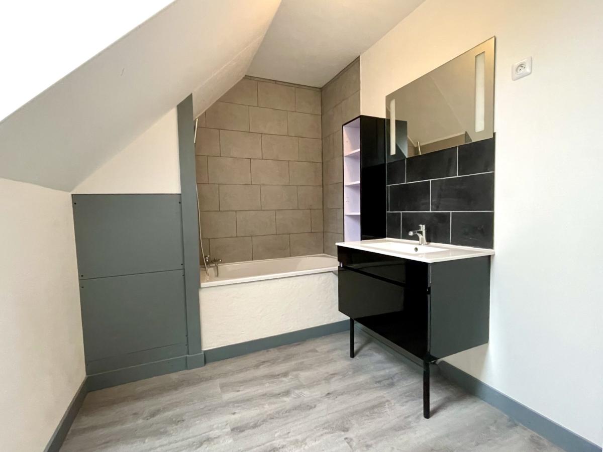 L'étage est distribué par un couloir qui dessert quatre chambres parquetées , une salle de bains avec wc.