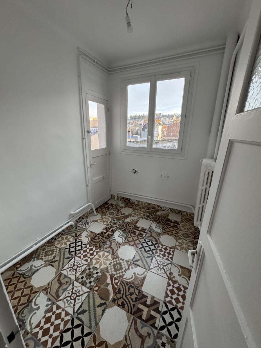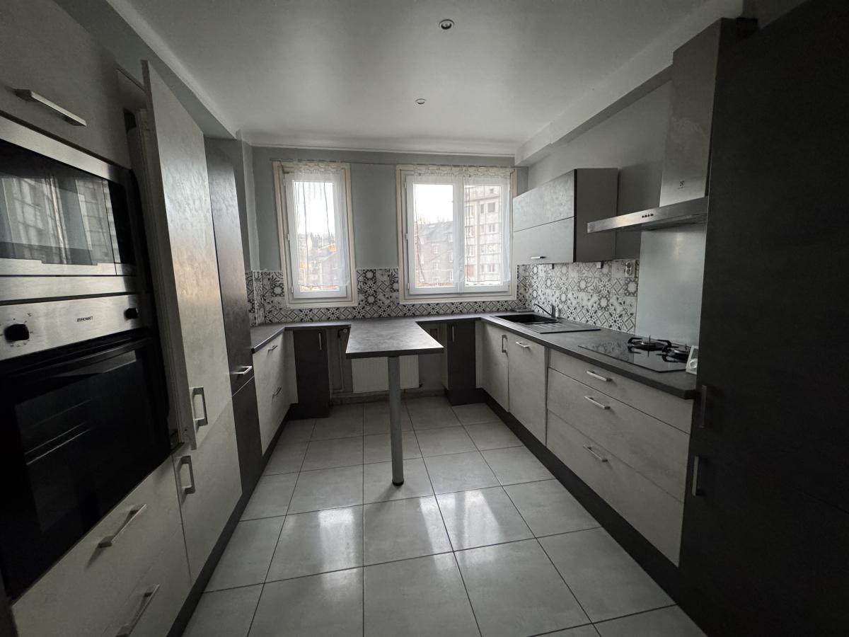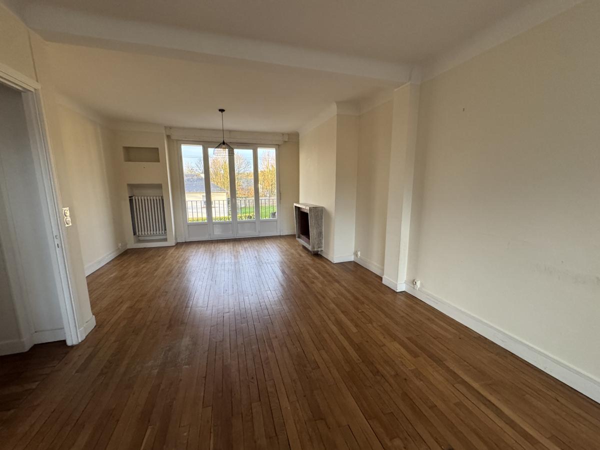 LISIEUX Gare proche commerces Appartement de 112m², au 1er étage sans ascenseur, comprenant: Entrée, séjour-salon, cuisine aménagée, 3 chambres, salle d'eau, loggia, buanderie et wc. Grenier. Cave. Garage