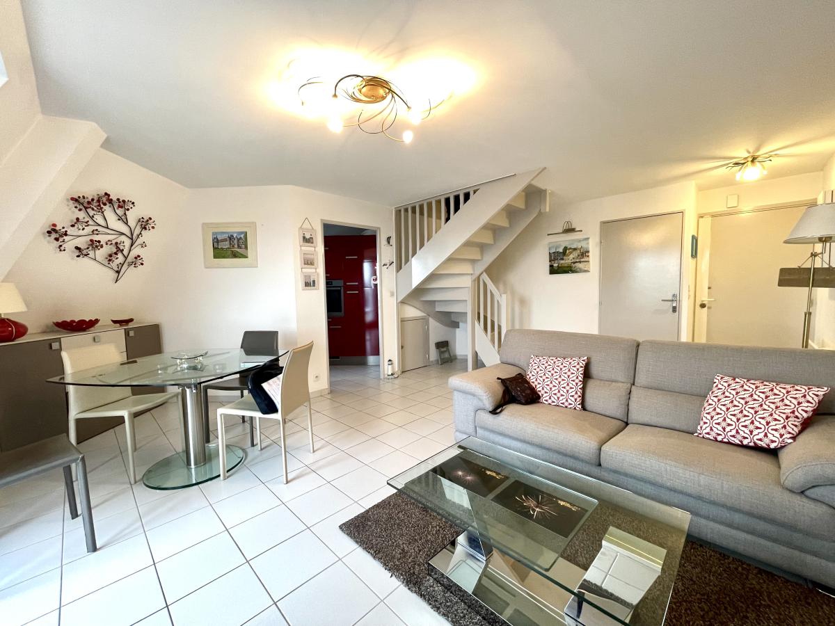 Duplex de 56.67 m² au 5eme étage , sans vis à vis , comprenant une belle pièce de vie avec balcon et une vue dégagée , cuisine aménagée et équipée , wc , au second niveau deux belles chambres avec placards, une salle d'eau .