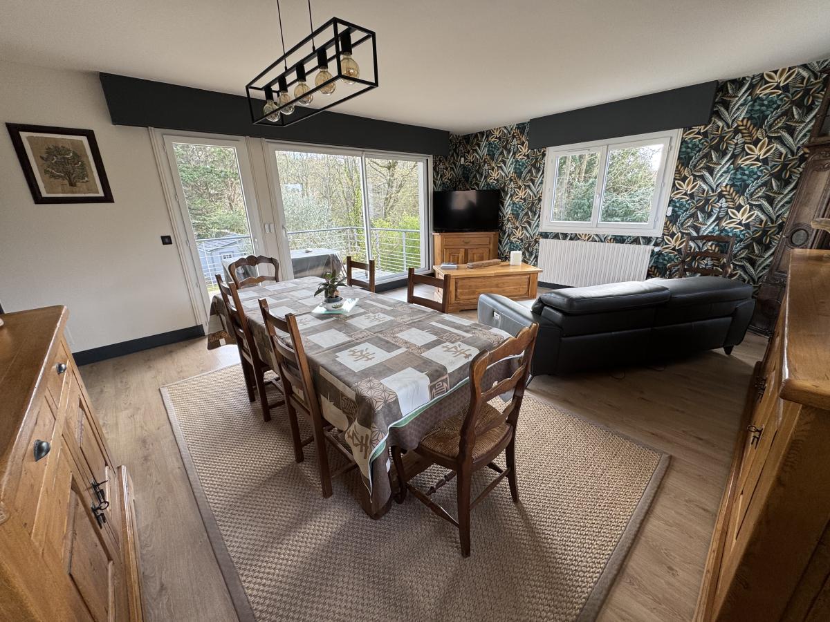 Au rez-de-chaussée surélevé: palier, séjour-salon avec terrasse, cuisine, chambre avec salle de bains et wc.