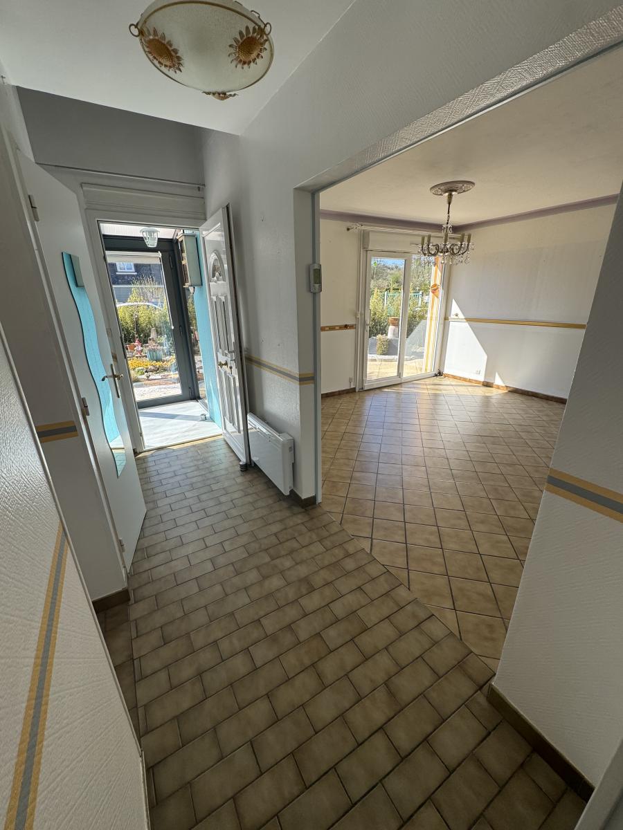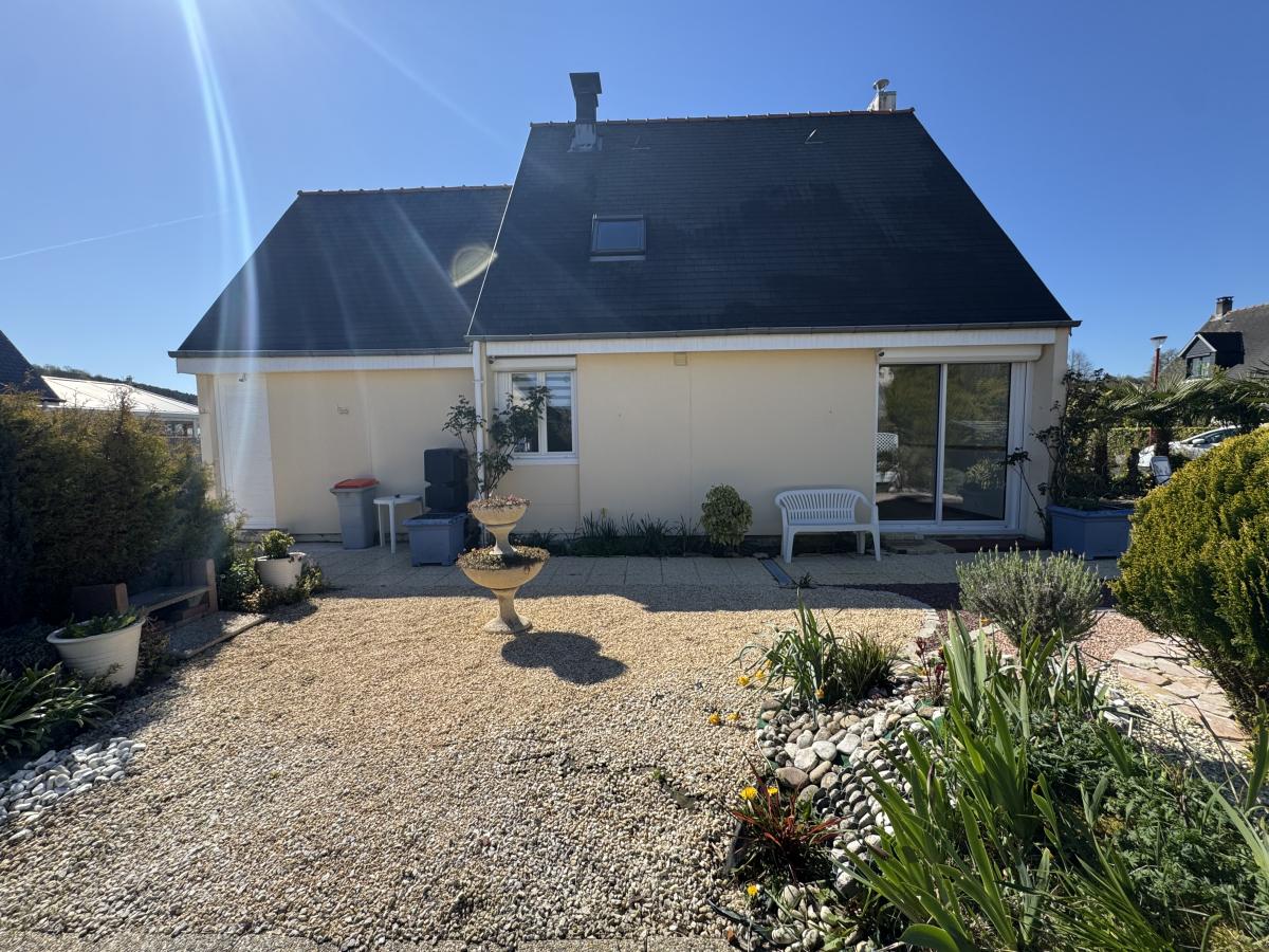 LISIEUX Proche (Saint Martin de la Lieue) Maison comprenant: RDC: entrée, séjour-salon, cuisine aménagée, wc et garage aménageable Etage: palier, 2 chambres et dressing Abri de jardin Terrain de 500m²