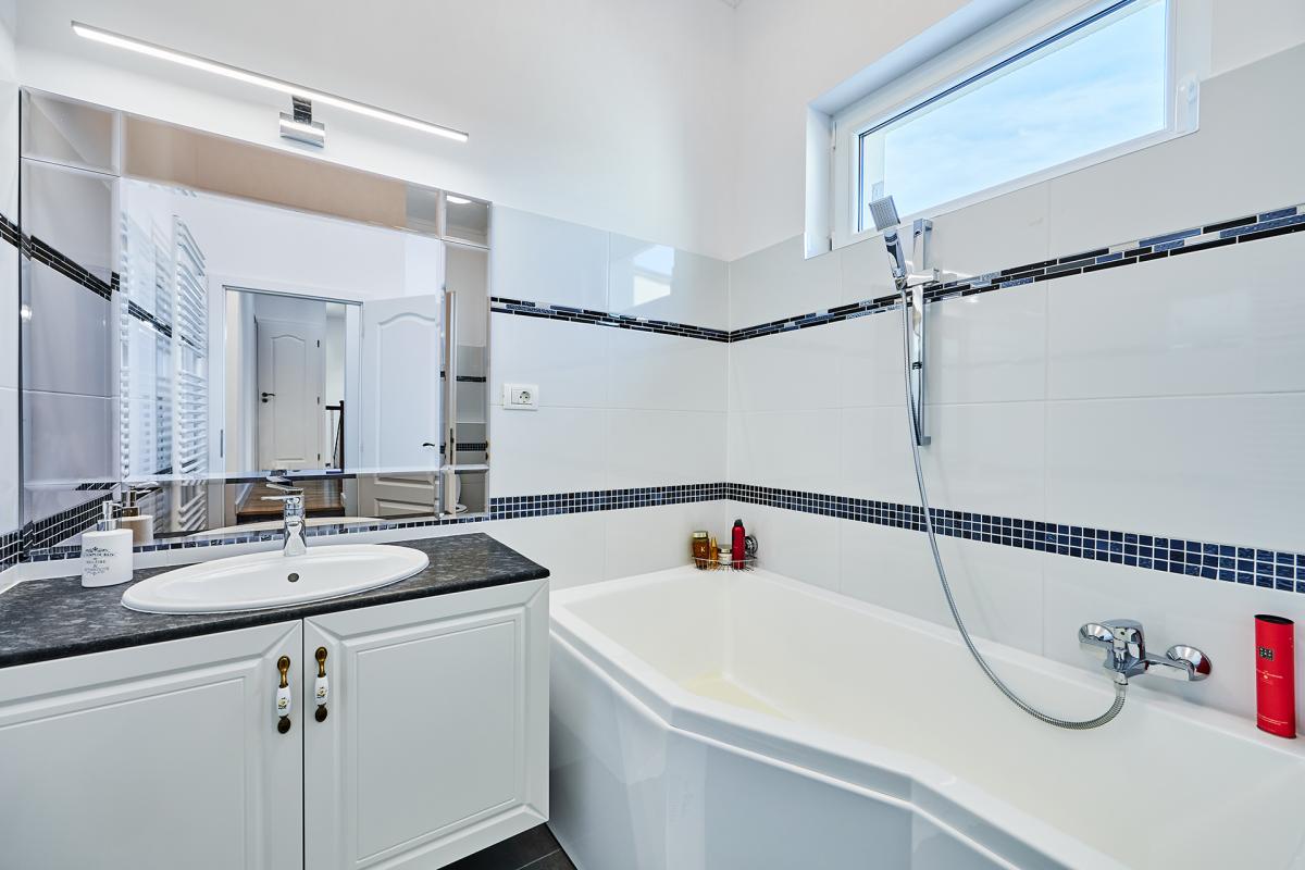 A l'étage: palier, 3 chambres et salle de bains avec wc.