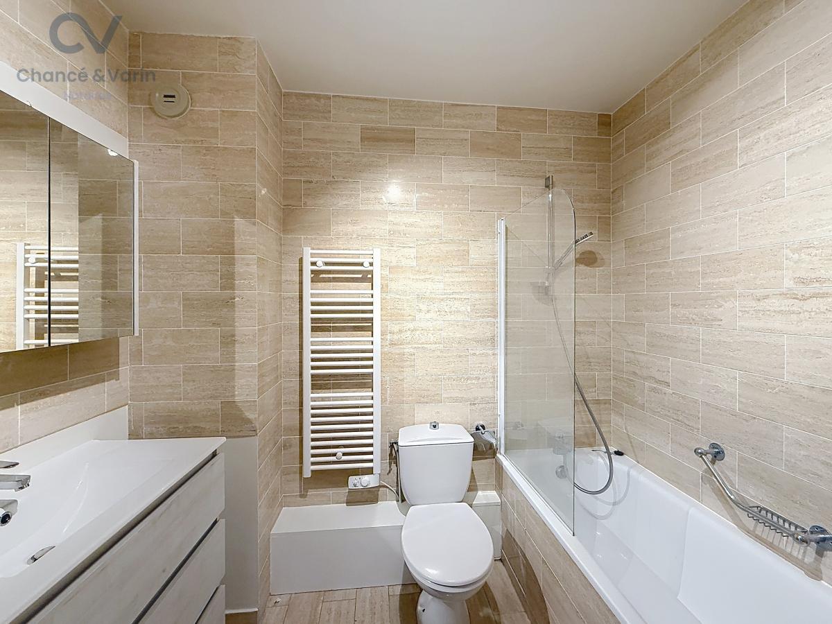 Il comprend également une salle de douche, une salle de bain, un séjour lumineux ouvrant sur un second balcon ainsi qu’une cuisine indépendante.