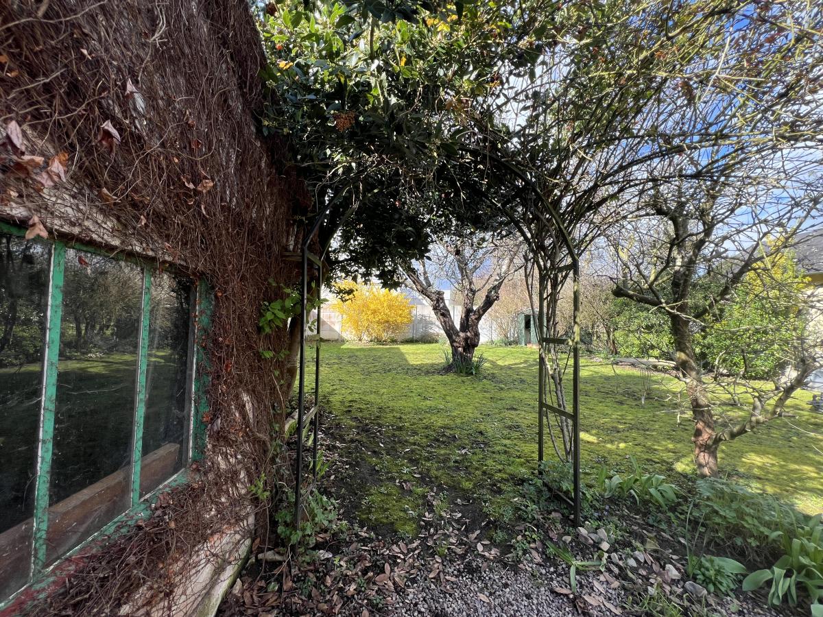 Cour gravillonnée, jardin d'agrément à l'avant et jardin en pelouse à l'arrière avec un abri de jardin pour une superficie de 618 m². Toiture récente. Beaucoup de charme. Potentiel d'agrandissement.