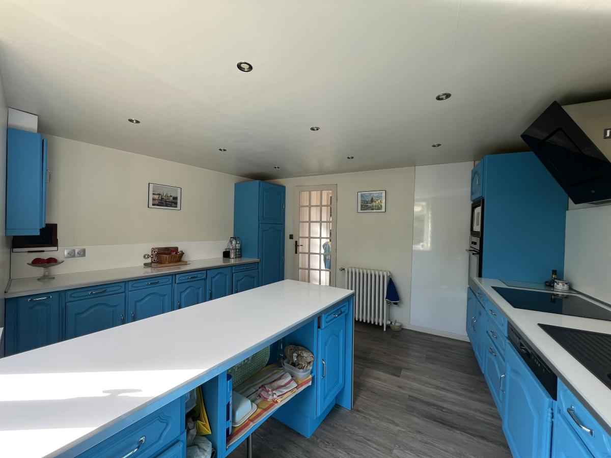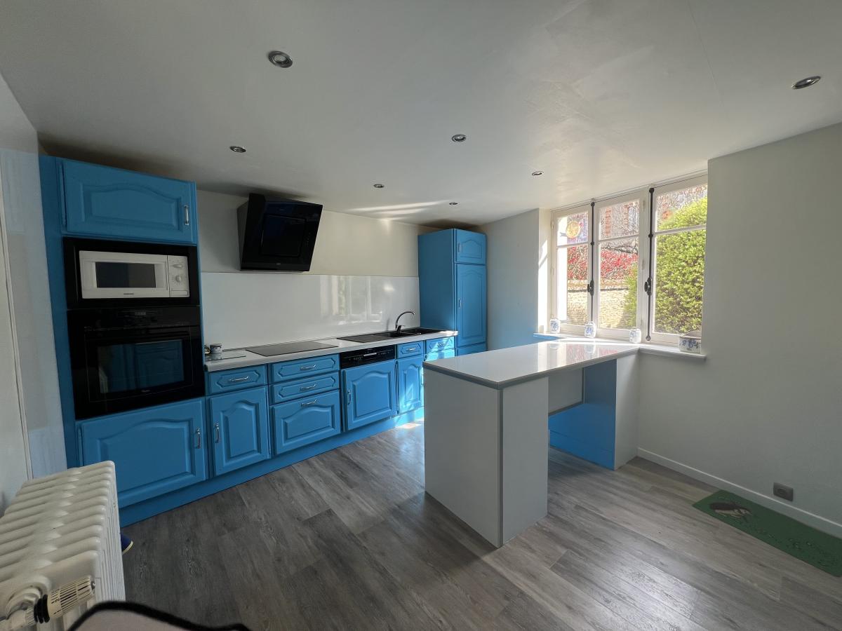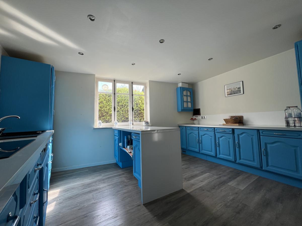 -au rez-de-chaussée : entrée, cuisine aménagée et équipée, séjour-salon avec cheminée, WC, salle de bains, buanderie (arrière cuisine).
