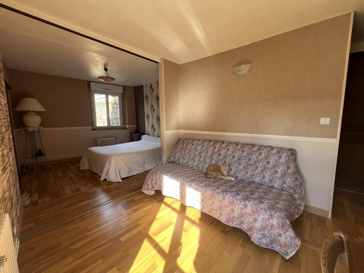 -à l'étage : 2 chambres (donc 1 séparée par une porte glissante profitant d'un second espace).