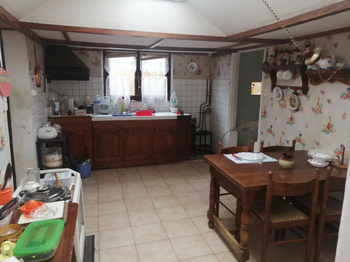 ERNES (14270) à environ 12 minutes de Mézidon Canon, maison ancienne en pierre comprenant au rez de chaussée : salle de séjour avec cheminée, salon, dégagement, cuisine, petit rangement, coin douche, wc séparé et véranda. Au 1er étage : palier desservant deux chambres. 2ème étage : grenier. S'ajoute une grande dépendance construite en pierre avec pressoir et grenier. Chalet en bois aménagé. Jardin d'environ 1567 m². Prévoir une enveloppe travaux. Pas de système de chauffage.