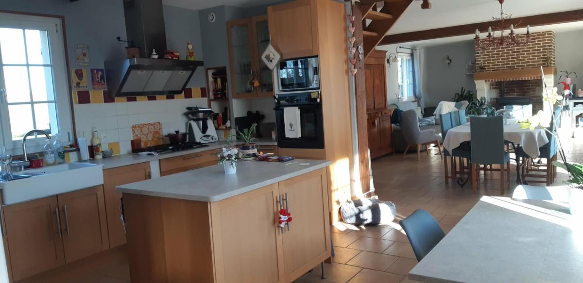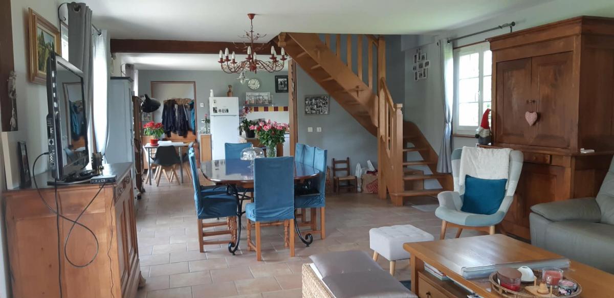 Dès l’entrée, vous découvrirez une lumineuse pièce de vie composée d’un séjour-salon chaleureux avec insert à granulés, ouverte sur une cuisine moderne, aménagée et équipée. La vie de plain-pied est facilitée grâce à une chambre, une salle d’eau et des WC au rez-de-chaussée, complétés par une arrière-cuisine fonctionnelle.
