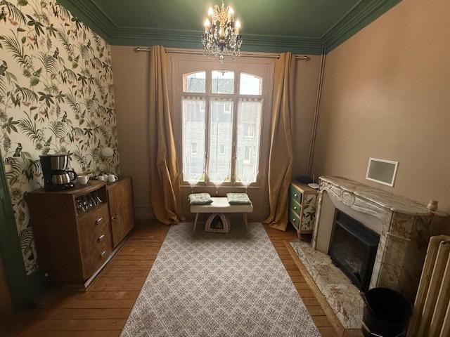 - Au rdc : Entrée, séjour-salon, cuisine ouverte aménagée sur coin repas, petit salon ou salle à manger avec cheminée insert.