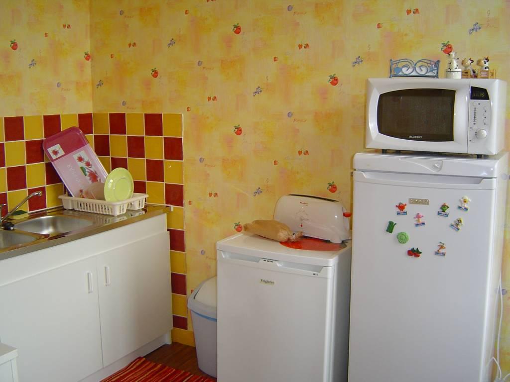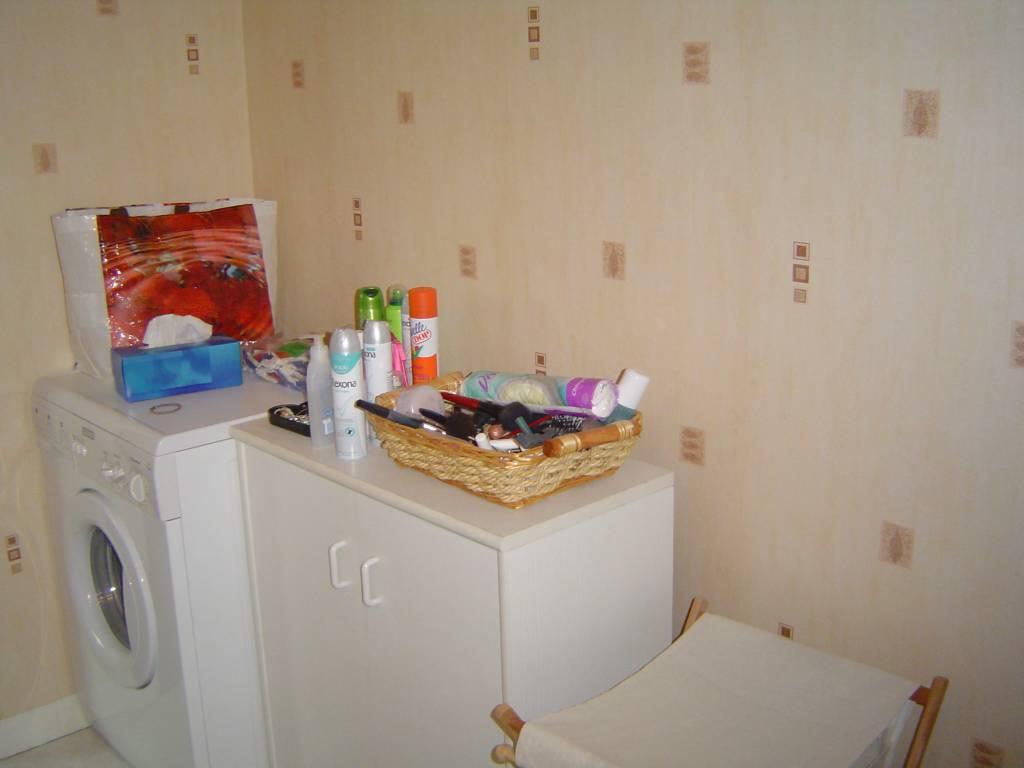 Entrée avec placards, salon-salle à manger, cuisine aménagée, wc avec lave-mains.