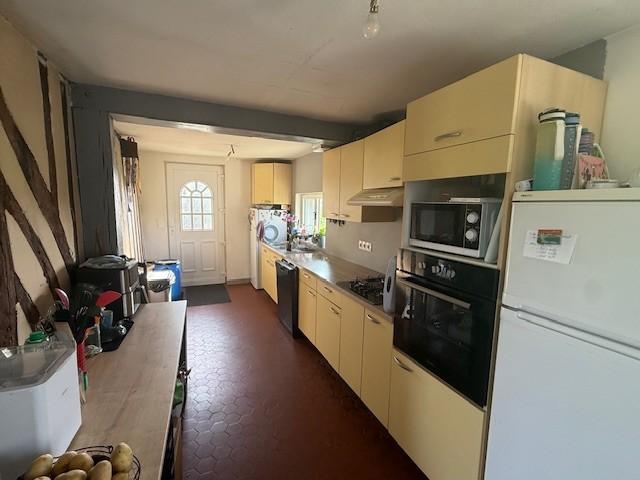 - Au rez-de-chaussée :salle à manger, autre salle-salon avec poêle à bois, cuisine aménagée et équipée, buanderie et wc, salle de bains, chambre ou bureau.