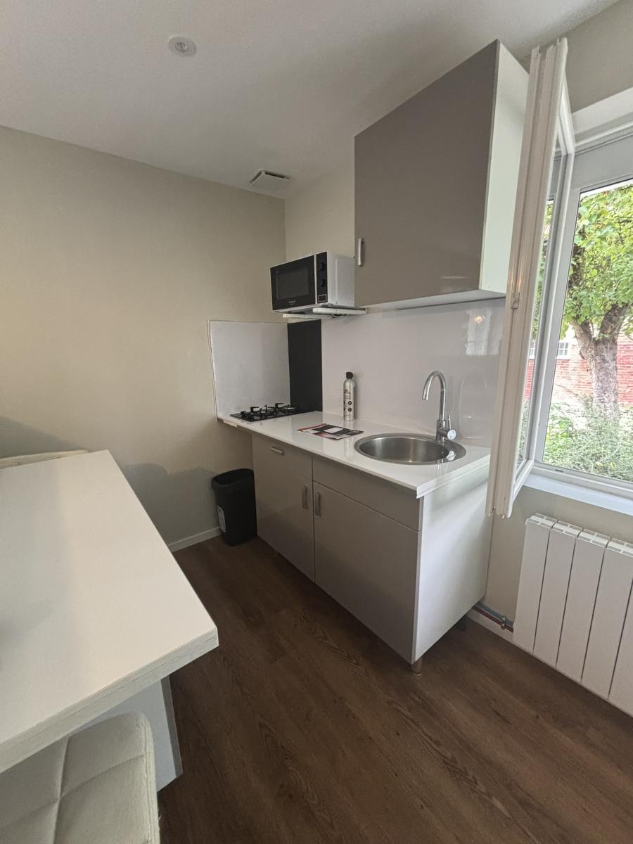 A Orbec, studio de 23m² à louer comprenant : Living séjour, cuisine aménagée, salle d'eau et wc.
