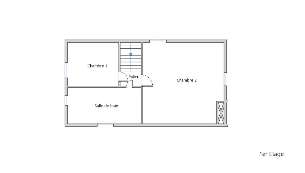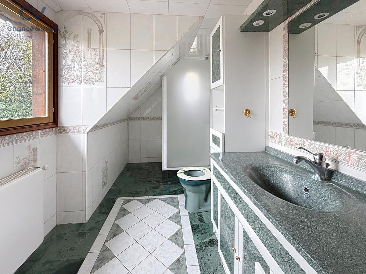 À l’étage, un palier distribue deux chambres confortables ainsi qu’une salle de bains avec toilettes, constituant un espace nuit bien distinct, parfaitement adapté à une vie familiale.