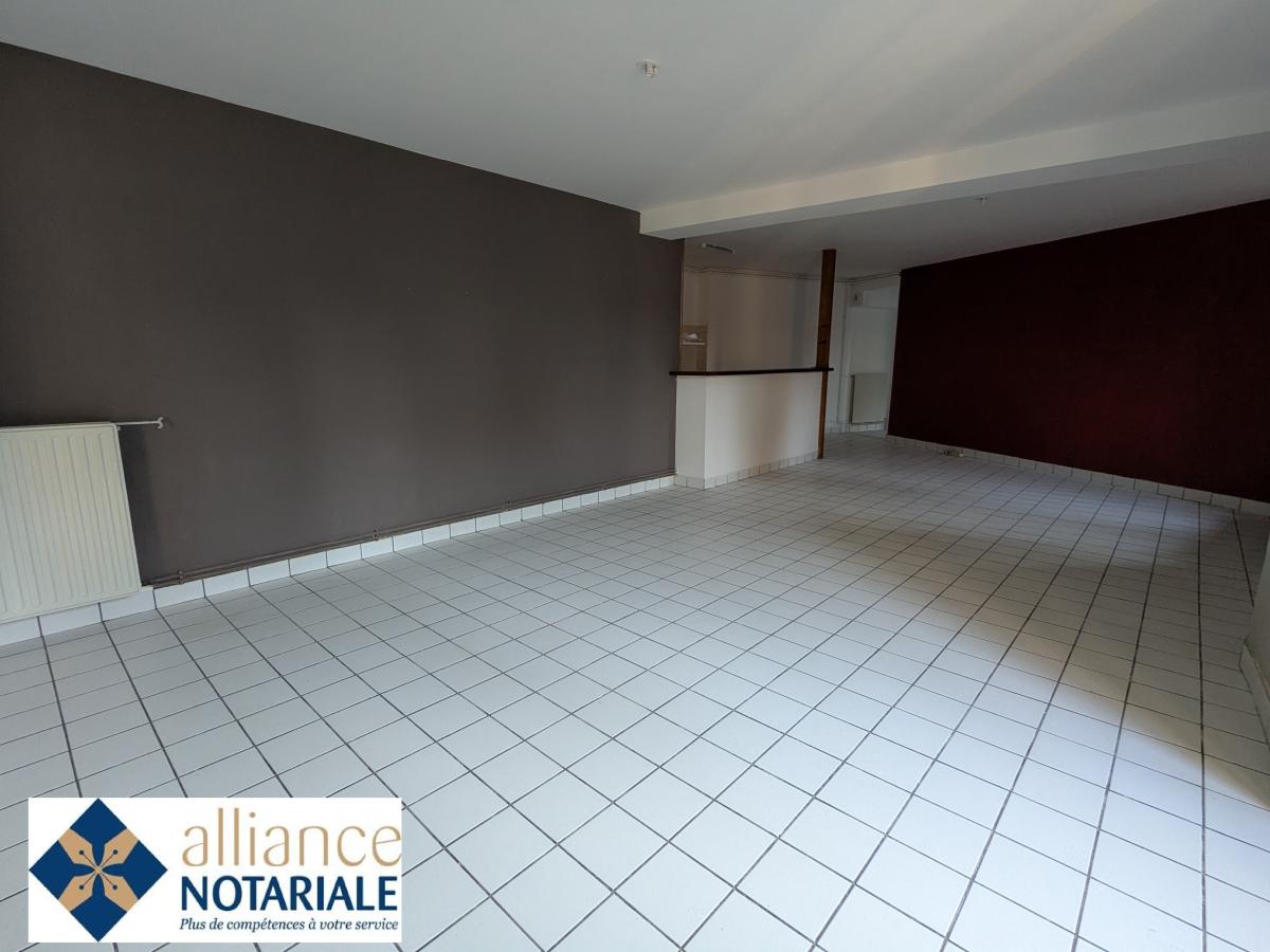 - Un grand séjour avec cuisine (non aménagée et non équipée), deux chambres, une salle de bains avec baignoire et douche, W.C..
