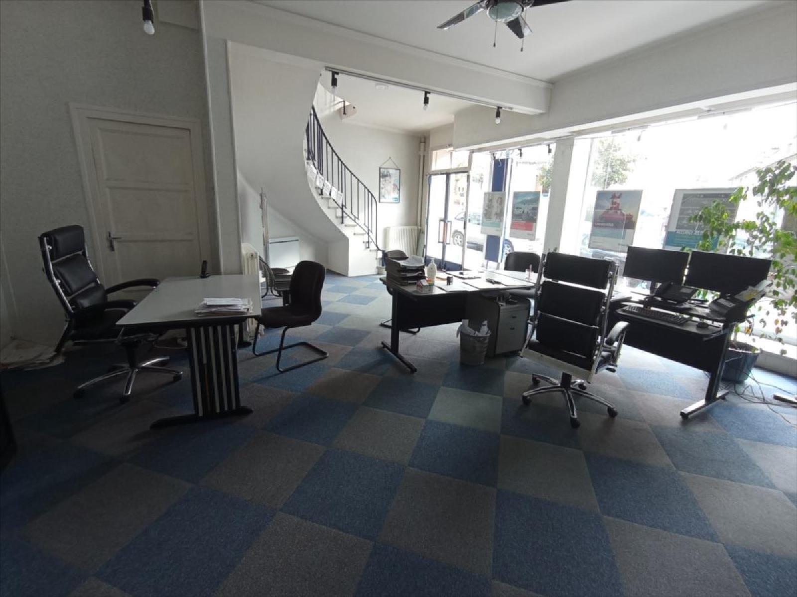 Local professionnel / commercial dans le centre ville de CONDE SUR NOIREAU. Local libre.Rez-de-chaussée : grande pièce avec vitrine, réserve,Etage : bureau en mezzanine, un second bureau, dégagement, wc Caves, garage.Nouveau DPE en cours
