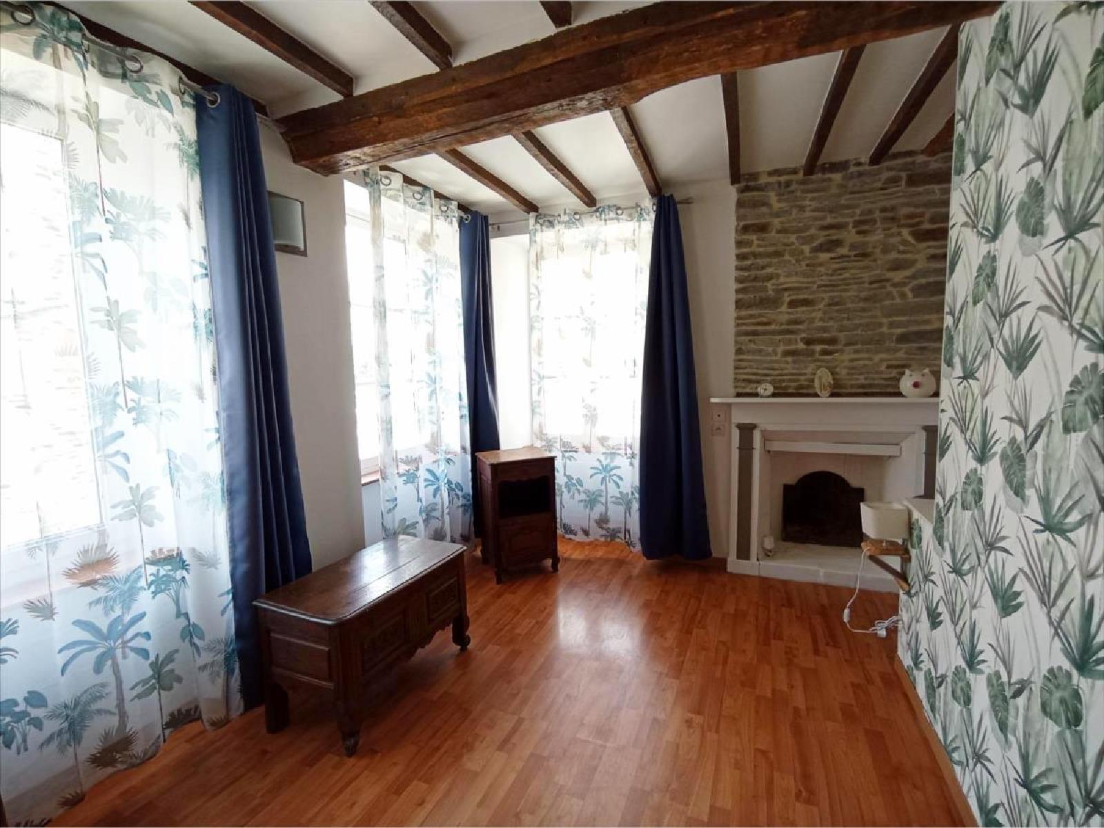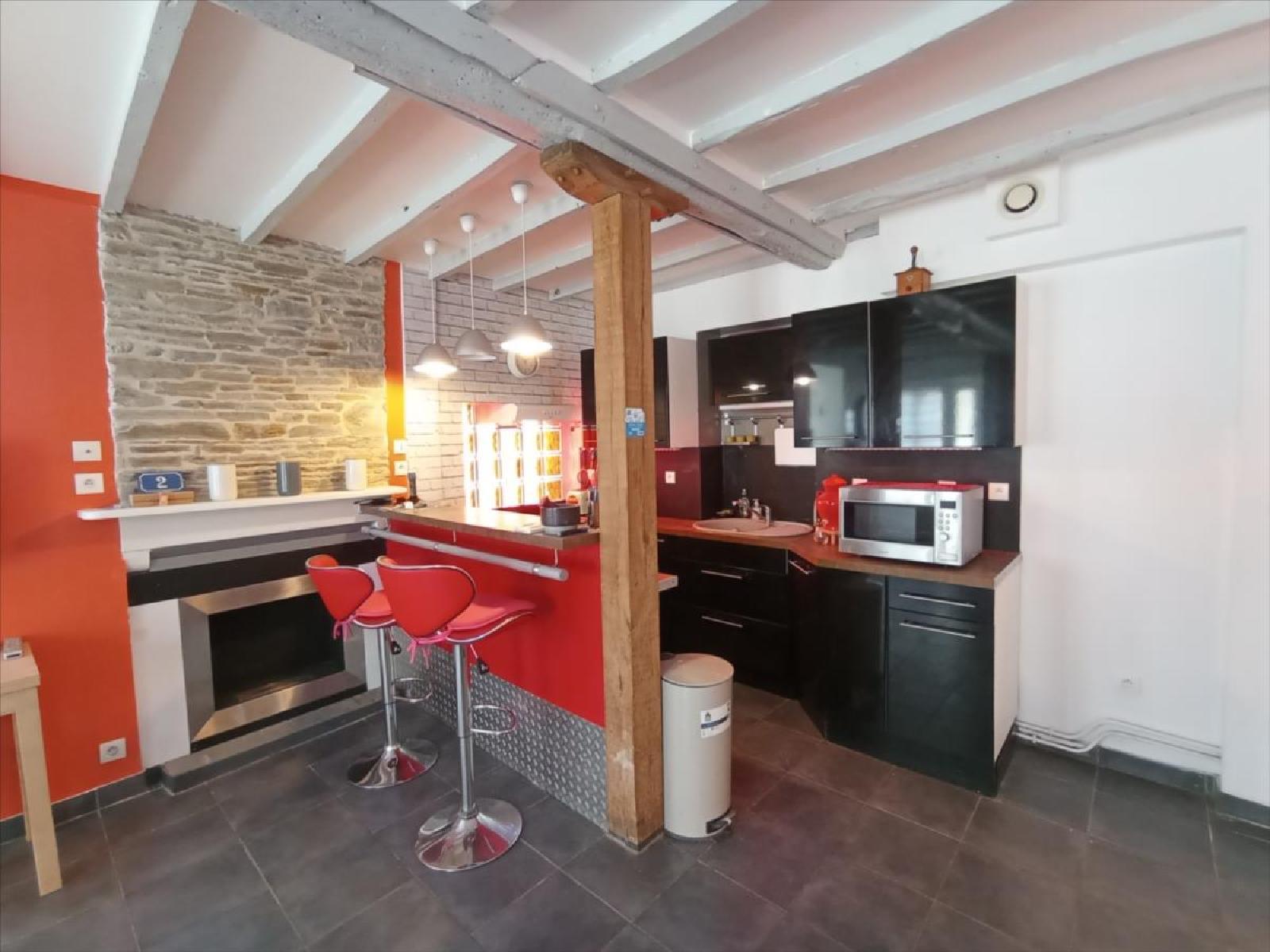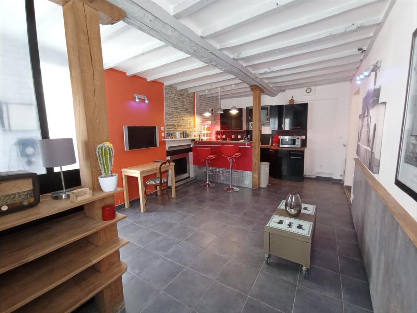 Maison de bourg mitoyenne par deux côtés et comprenant : Au rez-de-chaussée : séjour sur cuisine ouverte aménagée, dégagement, WC ; Au premier étage : palier, deux chambres, salle de bains et douche, WC ; Grenier au-dessus. Garage attenant. Pas de terrain. Accès par cour commune. Droit au puits. Logement à consommation énergétique excessive. Les informations sur les risques auxquels ce bien est exposé sont disponibles sur le site Géorisques : www. georisques. gouv. fr