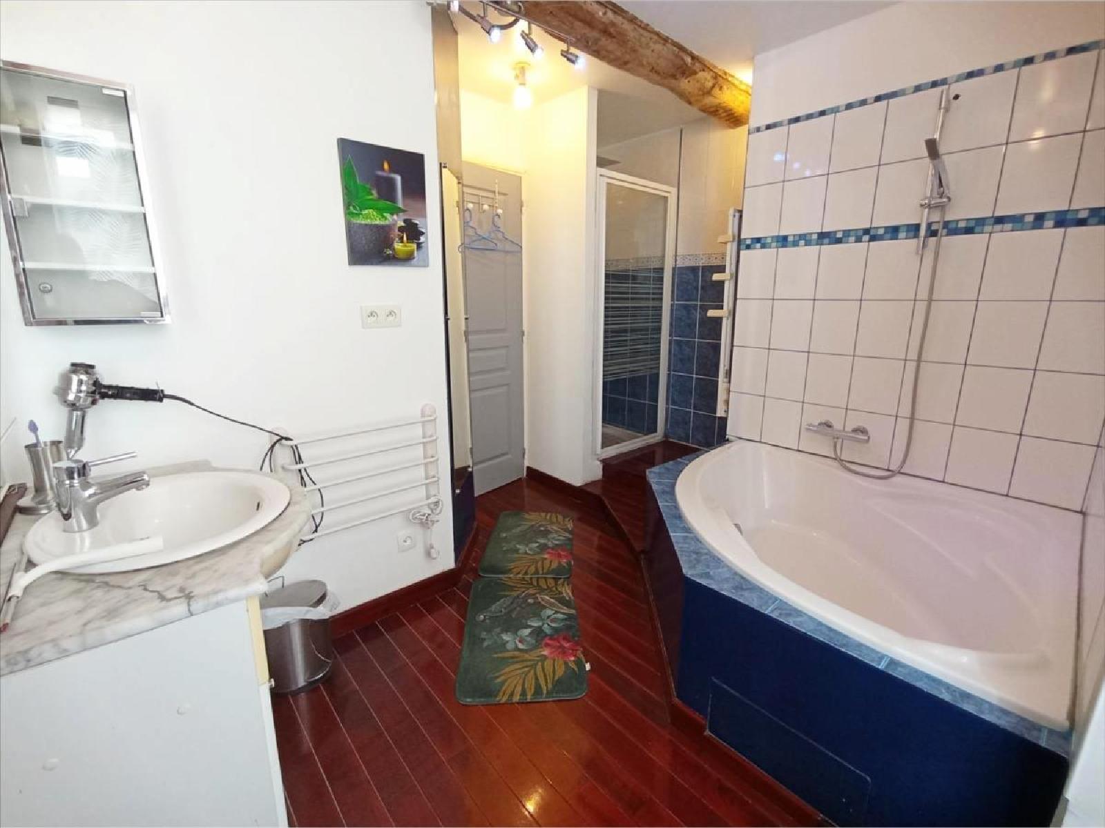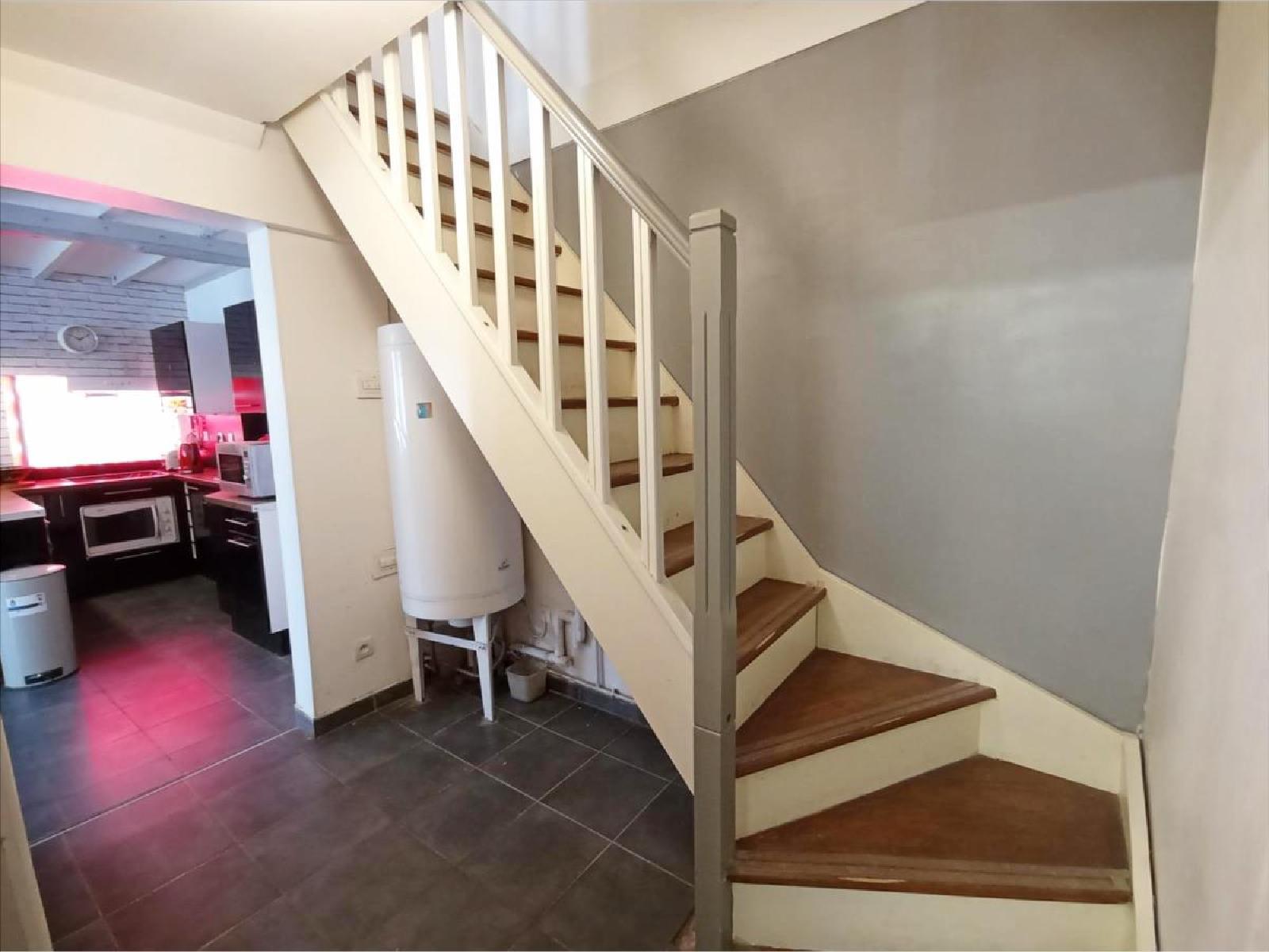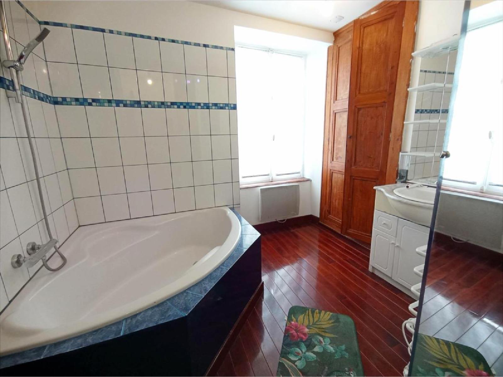 Maison de bourg mitoyenne par deux côtés et comprenant : Au rez-de-chaussée : séjour sur cuisine ouverte aménagée, dégagement, WC ; Au premier étage : palier, deux chambres, salle de bains et douche, WC ; Grenier au-dessus. Garage attenant. Pas de terrain. Accès par cour commune. Droit au puits. Logement à consommation énergétique excessive. Les informations sur les risques auxquels ce bien est exposé sont disponibles sur le site Géorisques : www. georisques. gouv. fr