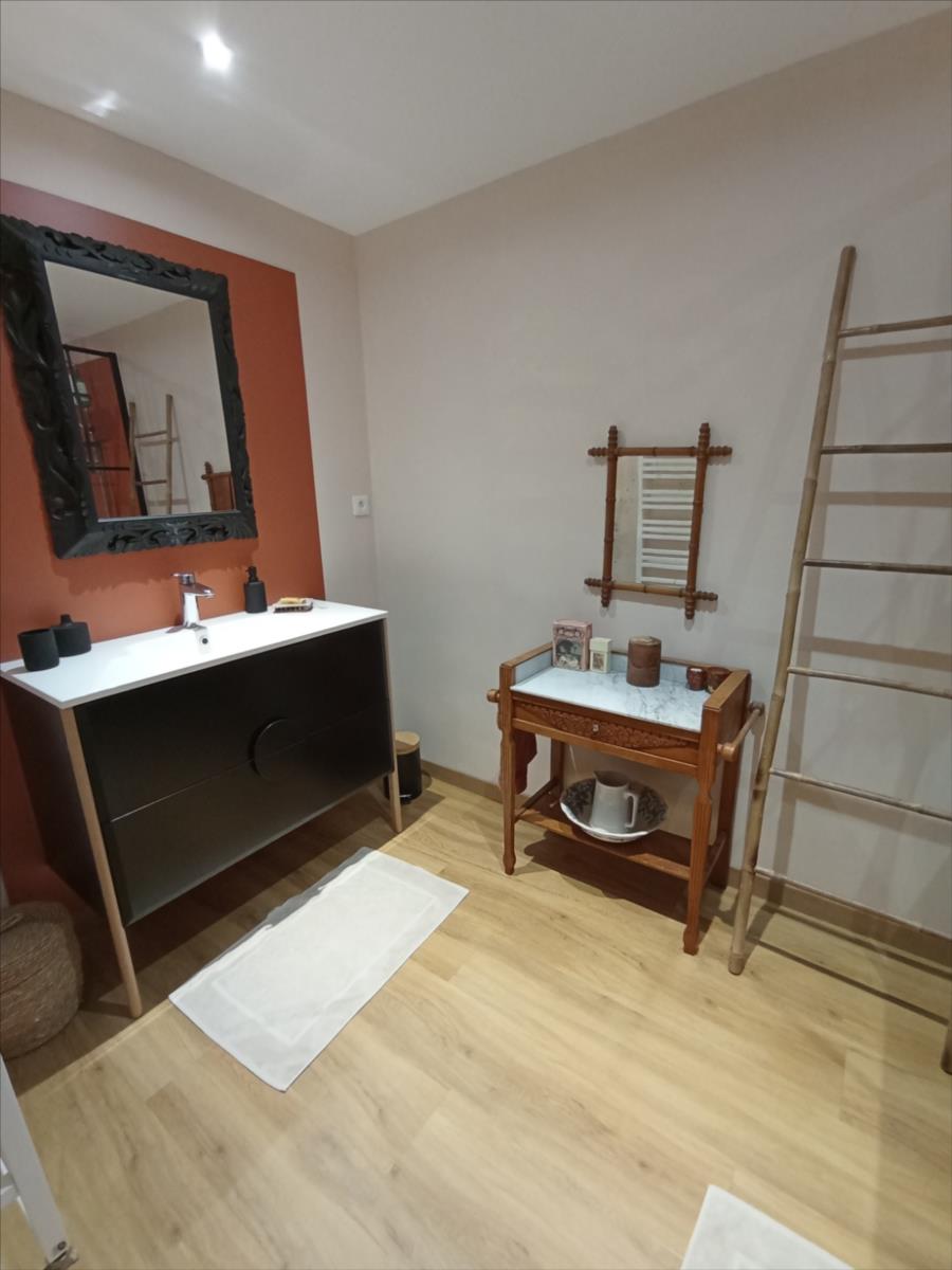 - Au premier étage: palier, trois chambres avec placards (+ une avec un point d'eau), WC, salle d'eau ; et une chambre avec placards, salle de bains privative et accès toit terrasse.