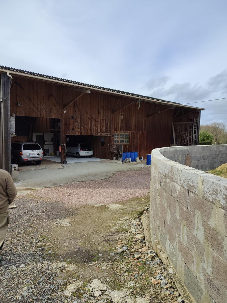 2- Un bâtiment de 200m² avec deux emplacements de voitures ainsi qu'un grenier. Une partie fermée de 70m²