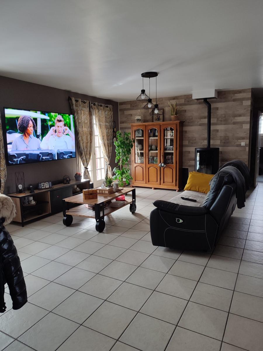 1- une maison d'habitation de plain pied avec une salle-séjour avec poêle à granulés, une cuisine équipée et aménagée, un cellier, un WC; trois chambres et une salle d'eau