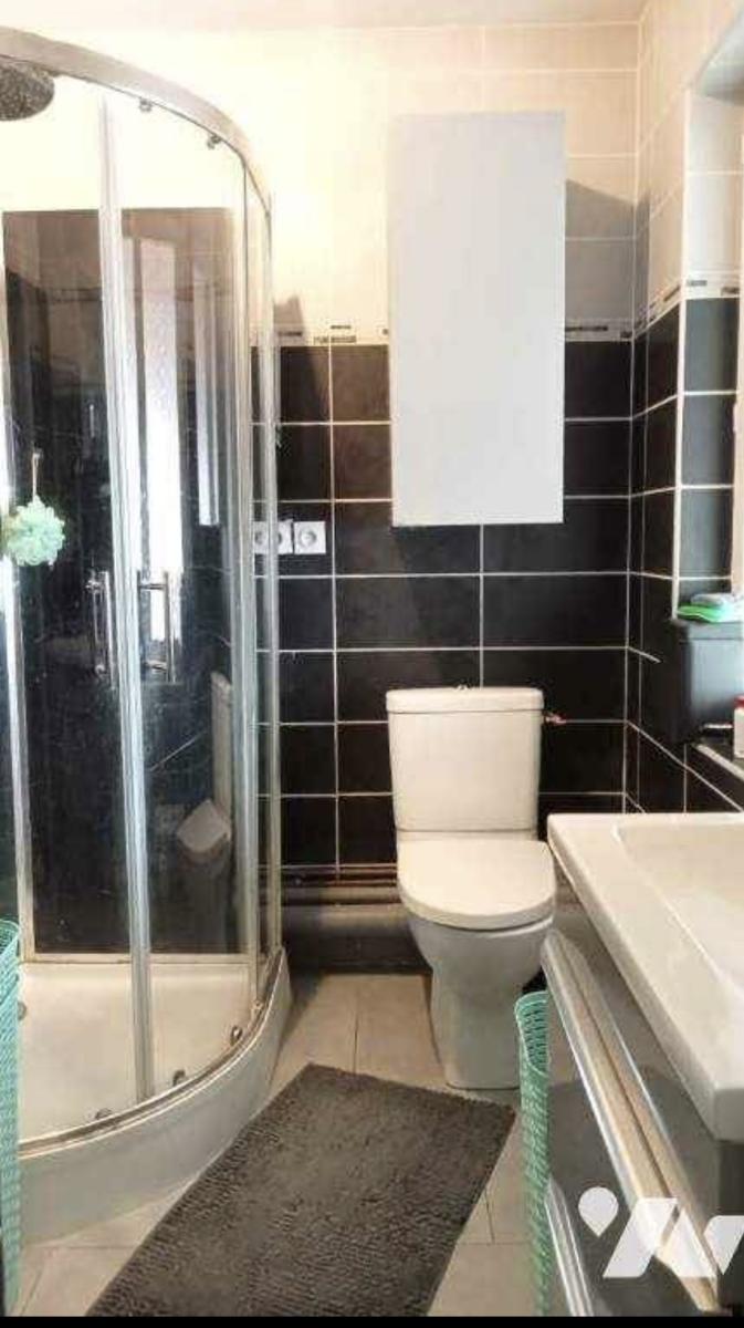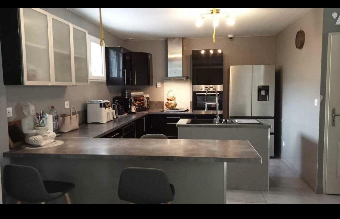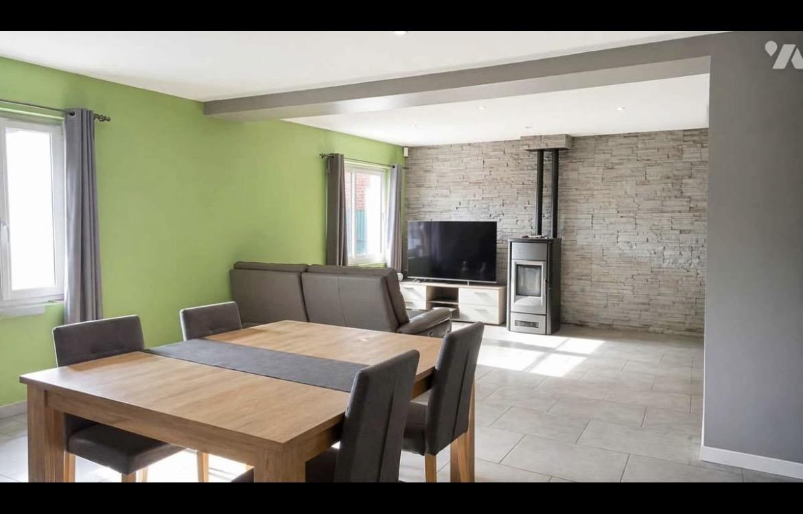 Maison d'habitation composée au rez-de-chaussée d'une entrée, une cuisine aménagée et équipée ouverte sur le séjour avec poêle à granulés, une salle de douche avec wc et placard de rangement.