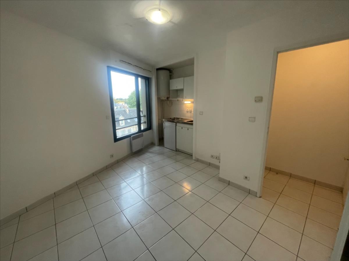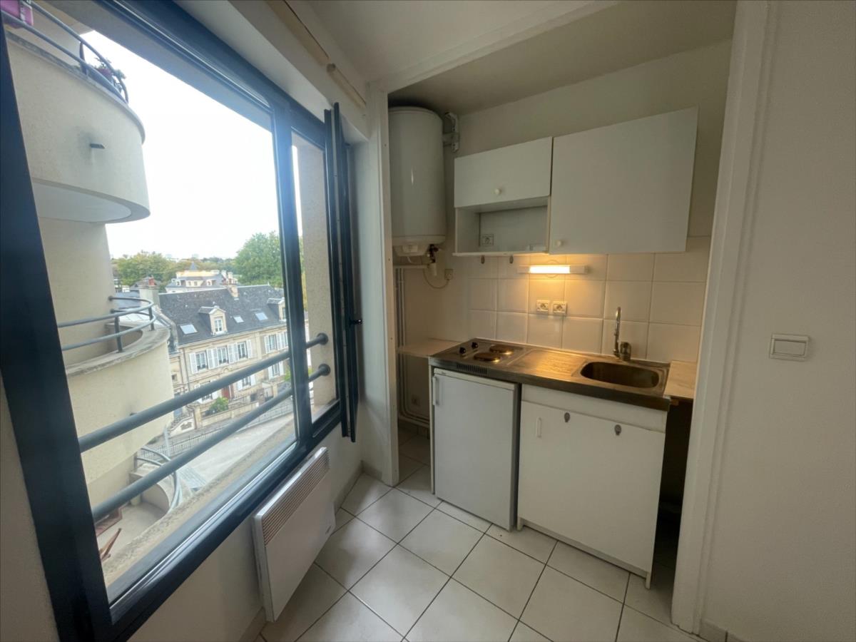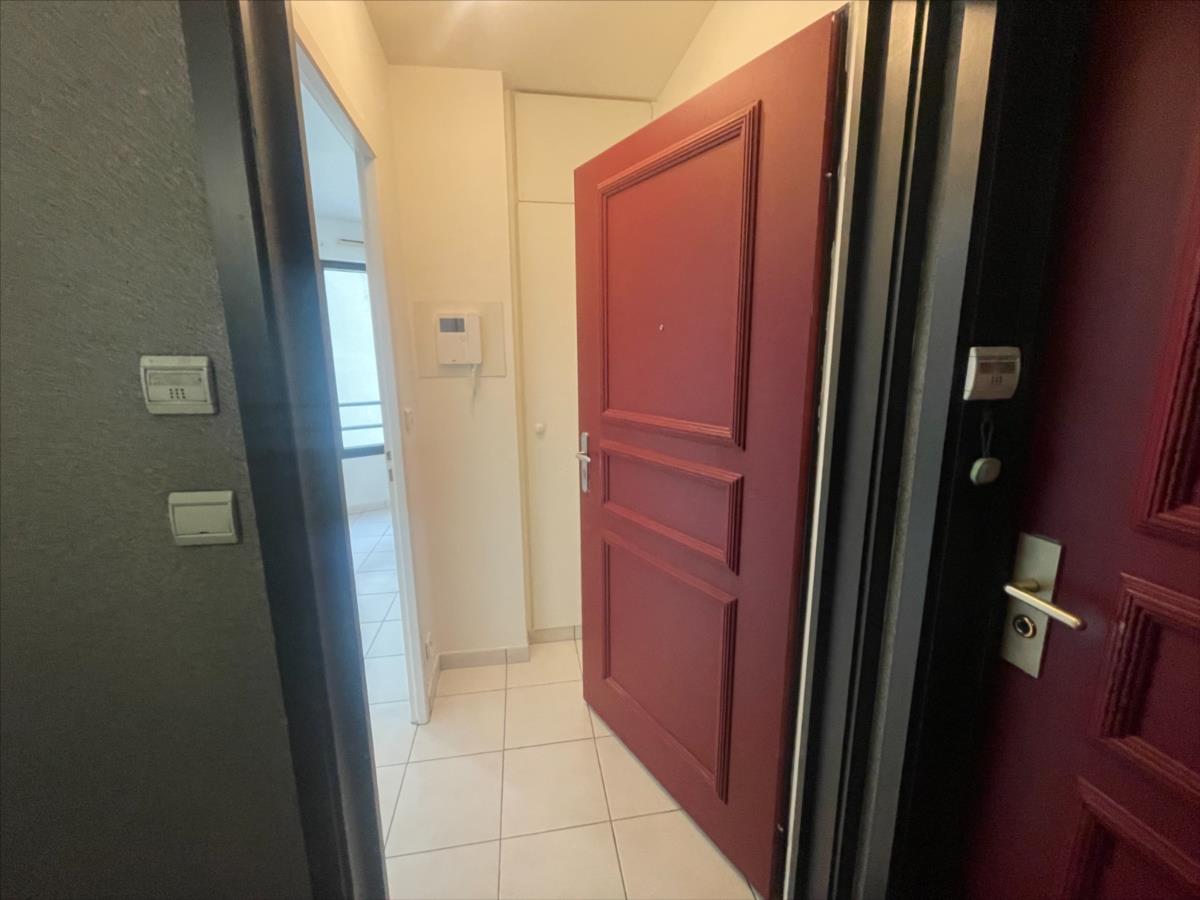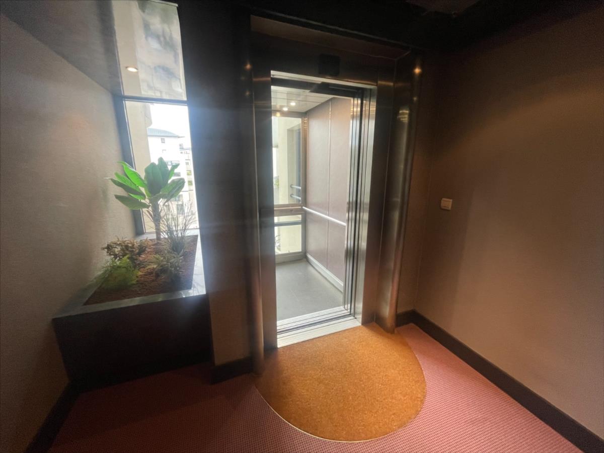 étage avec ascenseur, entrée placard, séjour avec kitchenette, salle d'eau avec