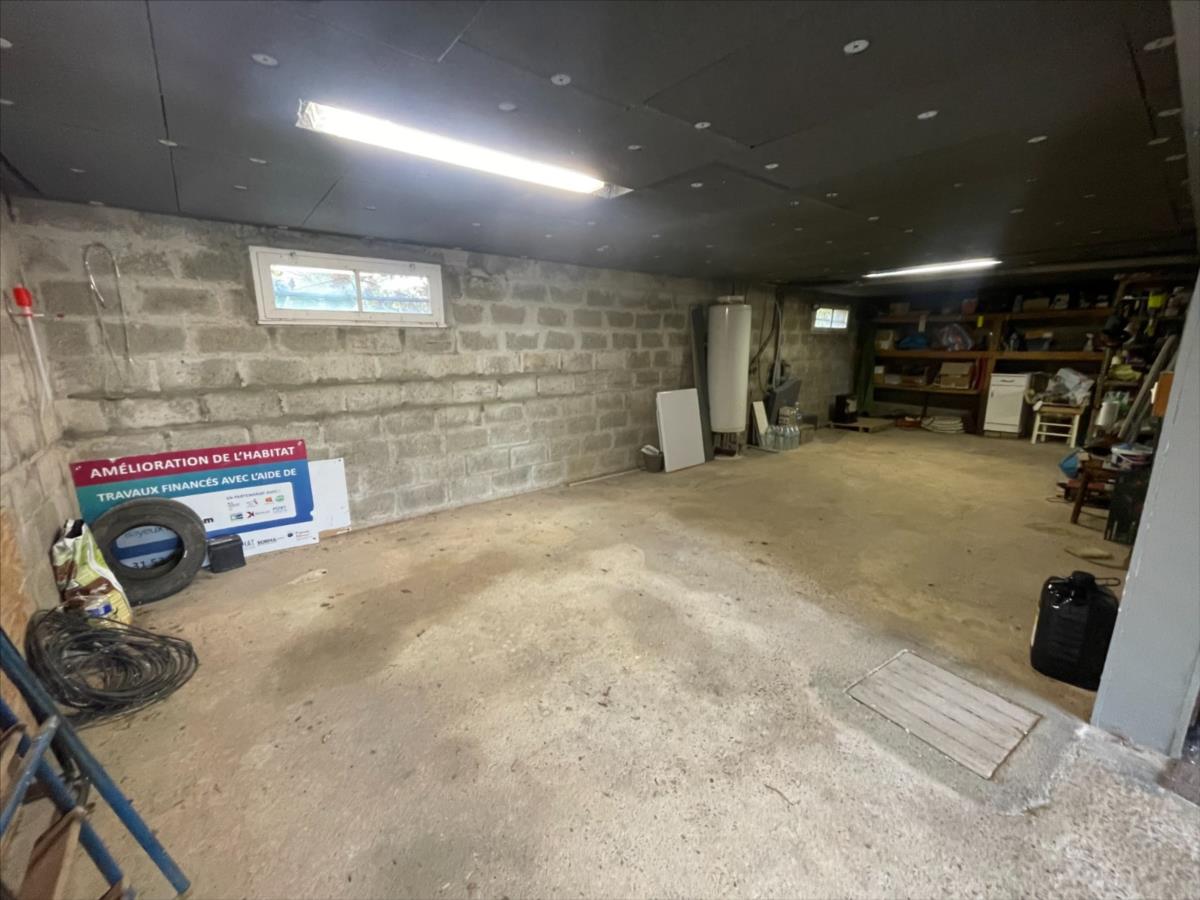 à manger et séjour avec poêle, salon ou chambre 3. Sous-sol complet. Jardin agréable