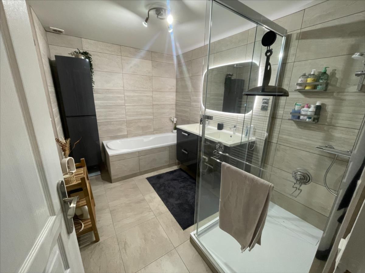 aménagée avec baignoire et douche, garage 42m² et espace buanderie avec évier. Au