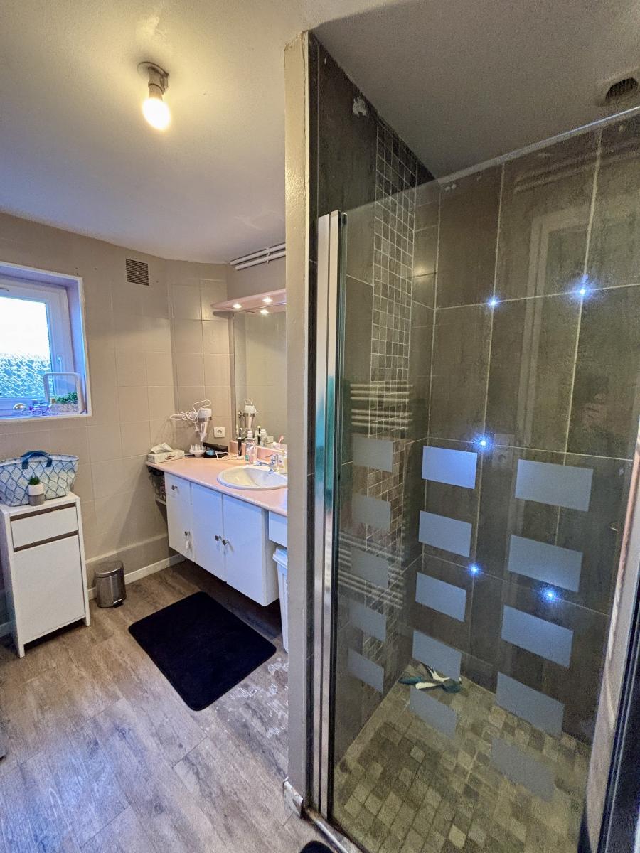 Un garage avec porte motorisée facilite le stationnement ainsi qu’une cave située en rez-de-chaussée complète l’ensemble.