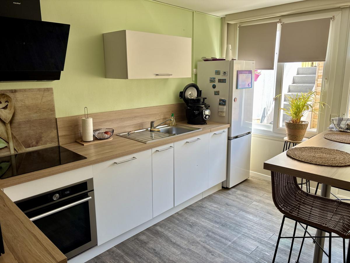Charmant appartement de type F4 situé au premier étage côté rue et en rez-de-jardin sur l’arrière, offrant une luminosité agréable.
