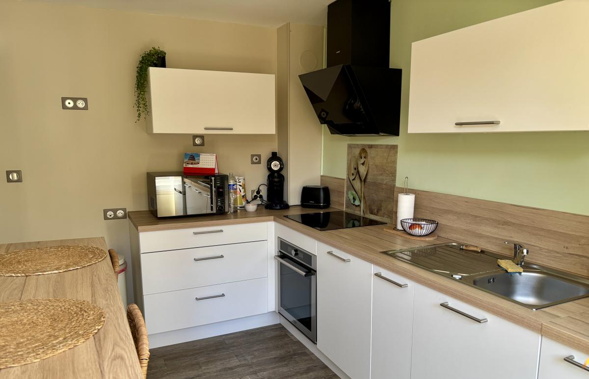 D'environ 88m², le bien se compose d’une entrée distribuant une cuisine aménagée et semi équipée, deux chambres, un bureau, un vaste séjour agrémenté d’une cheminée, une salle d’eau et des WC indépendants suspendus.
