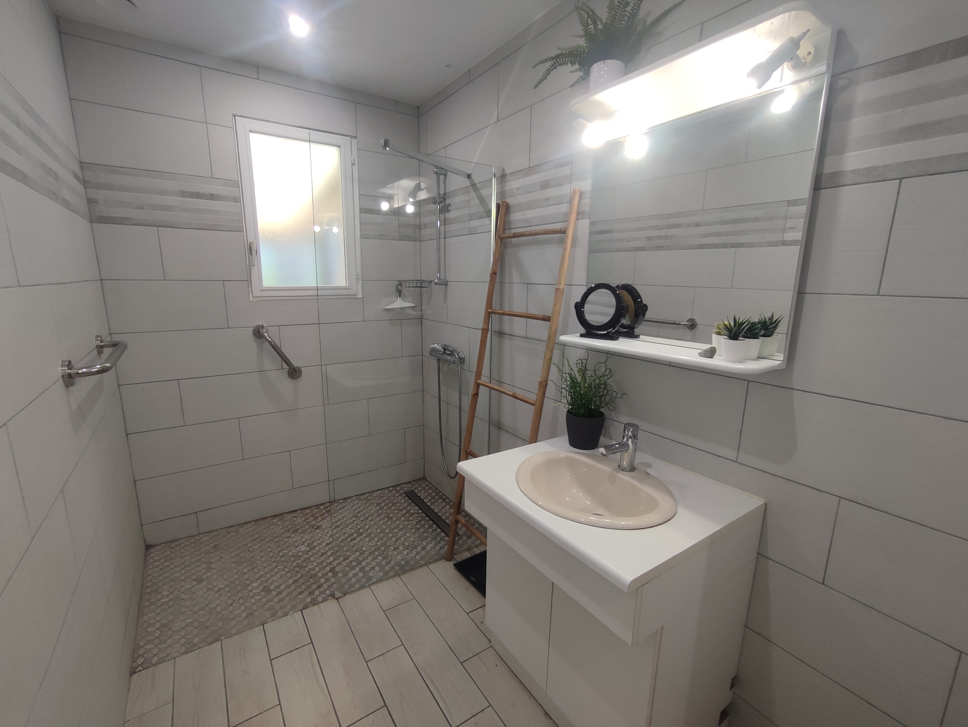 Vie de plain pied possible 'séjour ouvert sur cuisine de 37 m²) avec une chambre (10.33m²) et une belle salle d'eau (6.88m²), wc séparés. Belle véranda chauffée