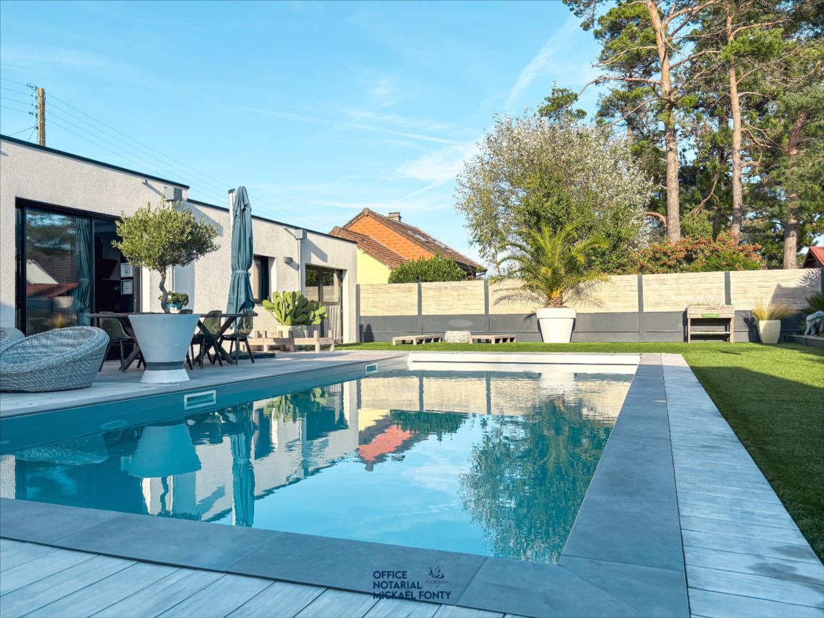 Les extérieurs sont soigneusement aménagés avec une belle piscine, un espace détente et une grande terrasse en bois. L'ensemble est parfaitement pensé pour profiter de moments conviviaux en toute intimité.Les + : volumes généreux, finitions haut de gamme, nombreux rangements, grande luminosité, environnement paisible.