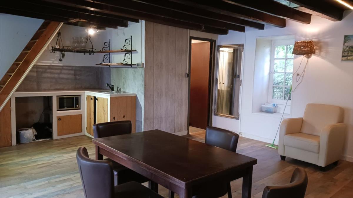 -au rez-de-chaussée : pièce de vie avec cheminée et cuisine ouverte, salle d'eau avec WC.