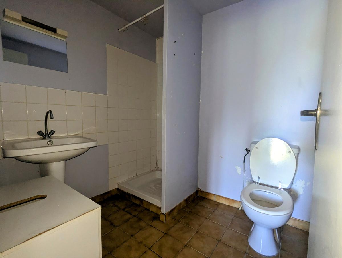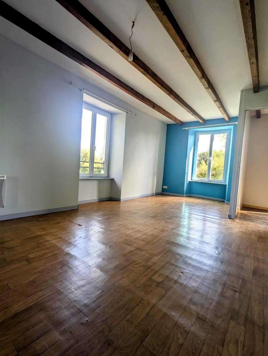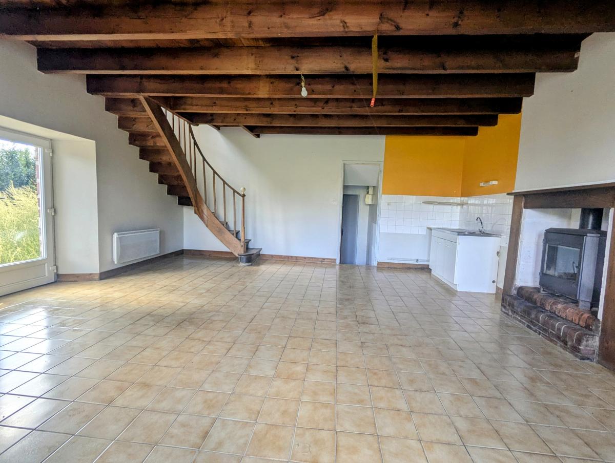Au rez-de-chaussée : une pièce principale avec coin cuisine équipée d’un poêle à bois, une salle d’eau WC, cave.