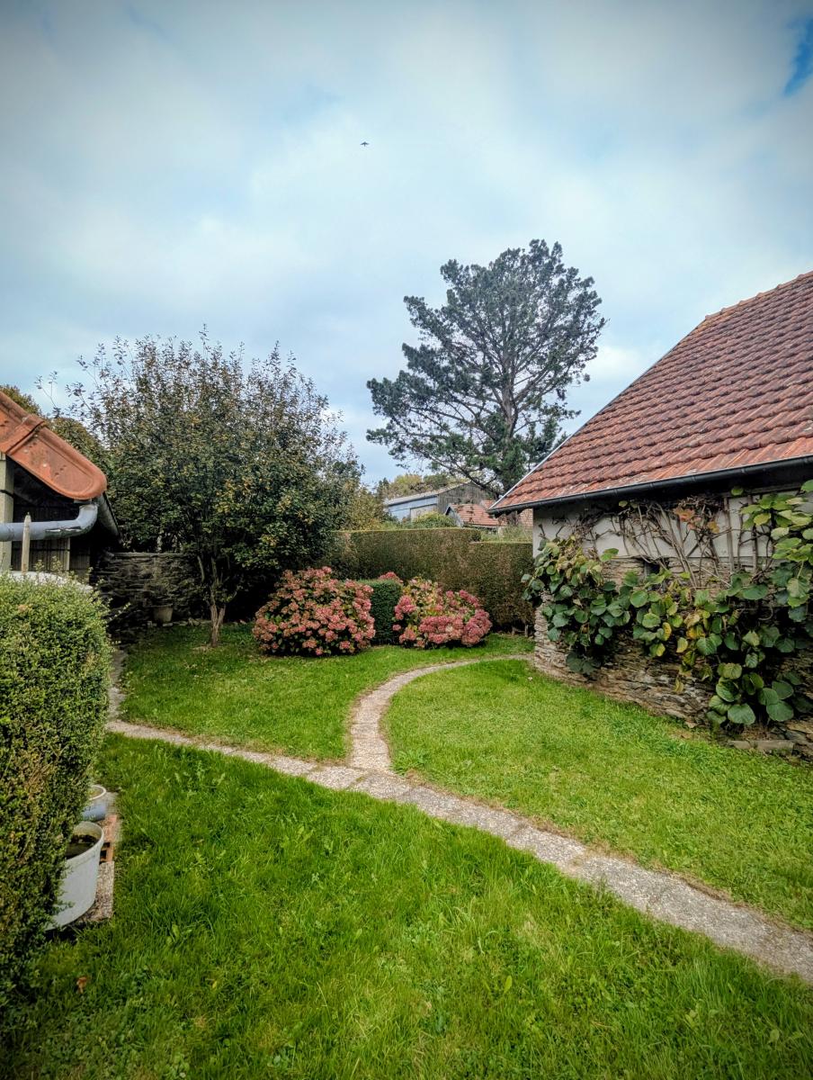Maison dont la façade côté jardin est en pierre, située dans un environnement calme.