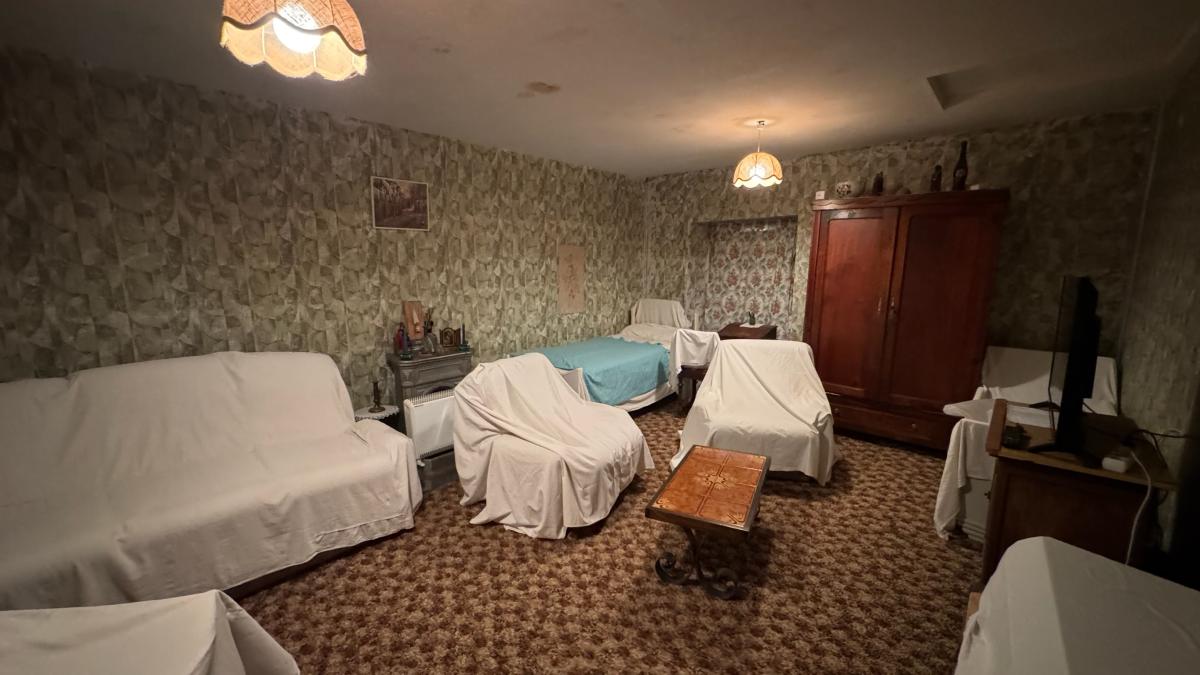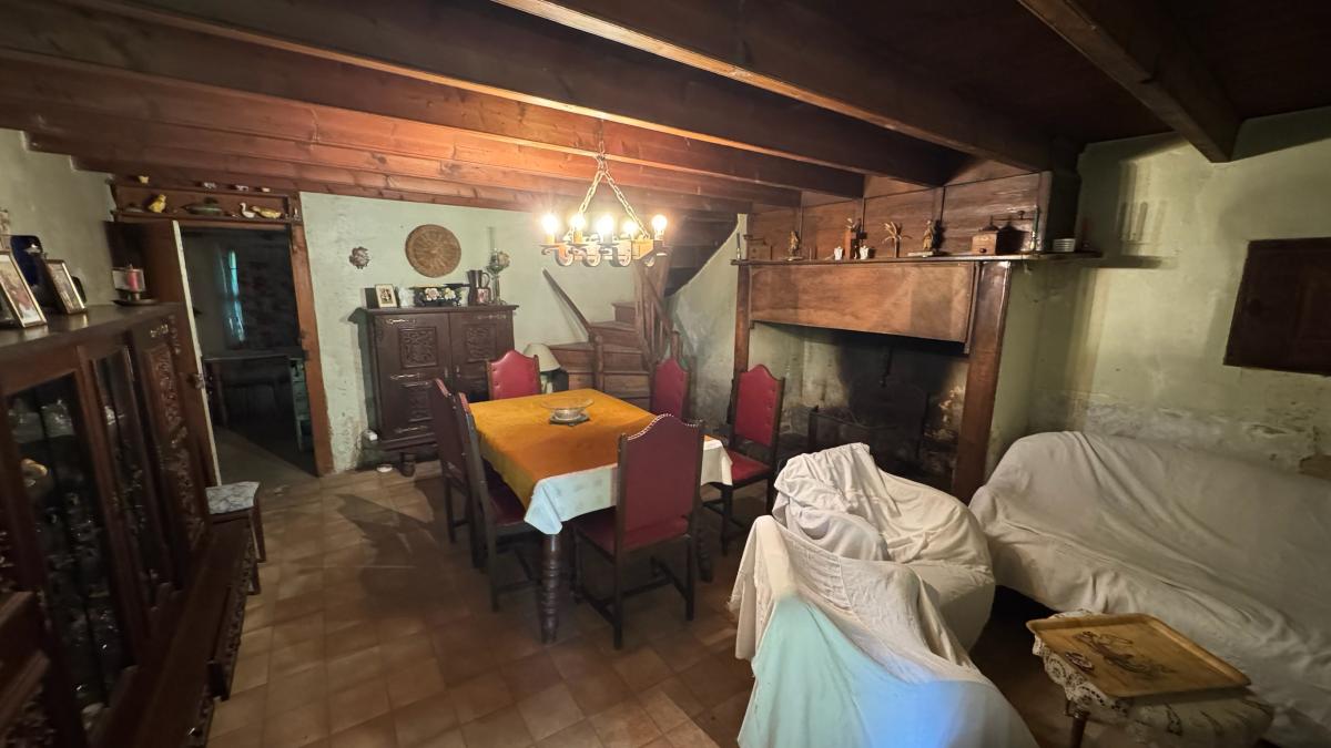 - Au-rez-de-chaussée : entrée dans séjour de 24.6m² avec cheminée foyer ouvert, autre pièce de 23.7m² , petite cuisine de 5m², salle de douche de 3.86m², WC