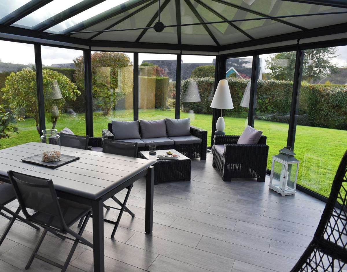- Au rez-de-chaussée : entrée sur séjour/salon avec cuisine ouverte aménagée et équipée (plaque induction, hotte, four, micro-onde, frigo), véranda, WC avec lave-mains, pièce vestiaire avec accès garage et buanderie/chaufferie.