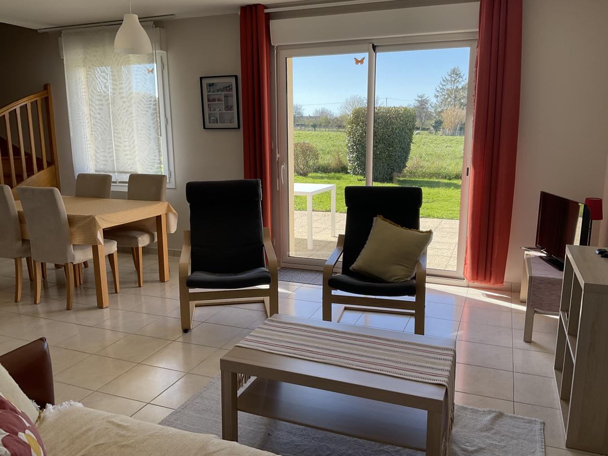 LE VAL SAINT PERE Maison mitoyenne comprenant une entrée avec rangements, pièce de vie et espace cuisine aménagée avec conduit de cheminée, un wc avec lave-mains. A l'étage, un palier, deux chambres, une salle d'eau, un wc avec lave-mains. Garage / terrasse de 24m² Terrain d'environ 350m².