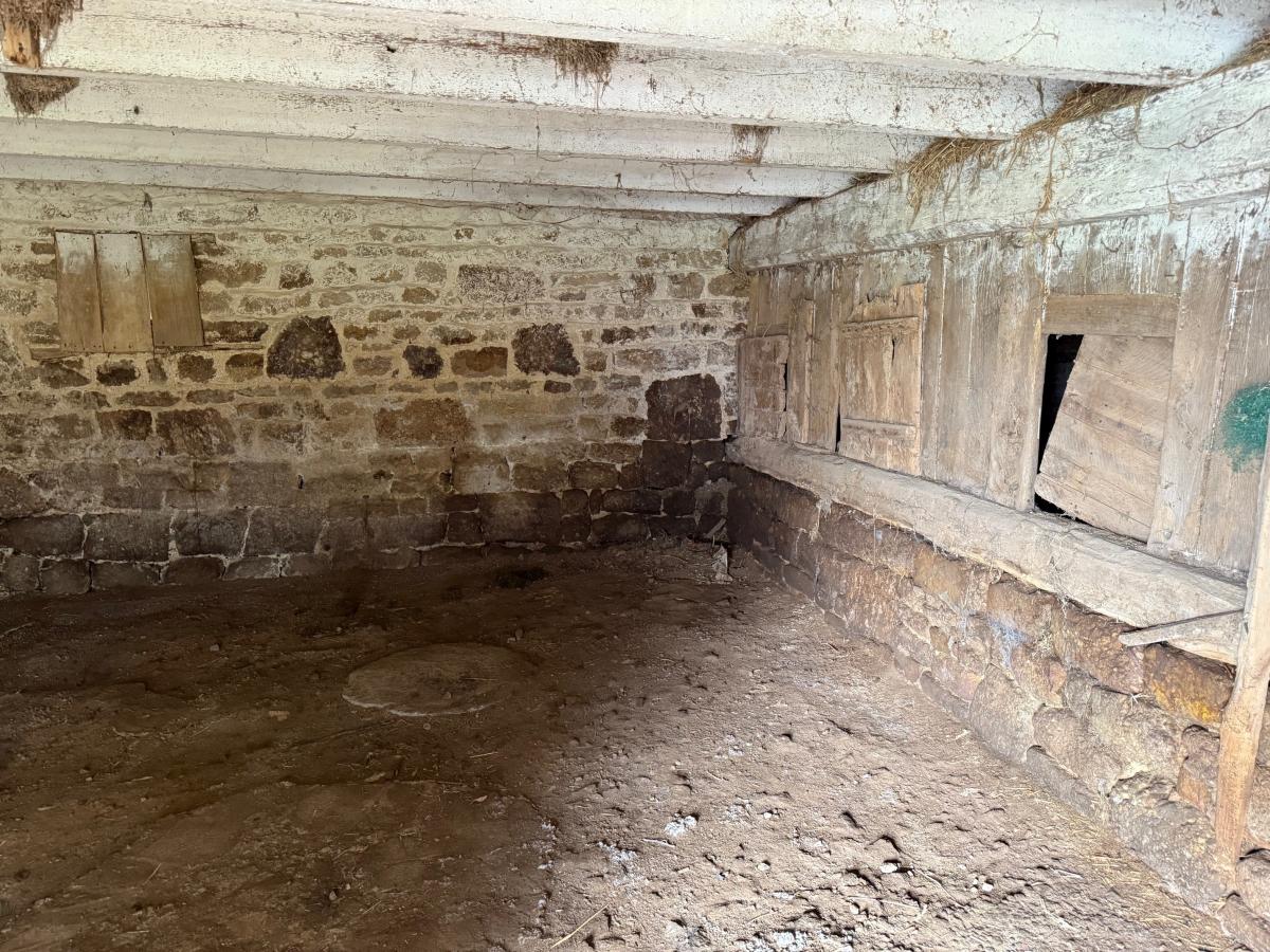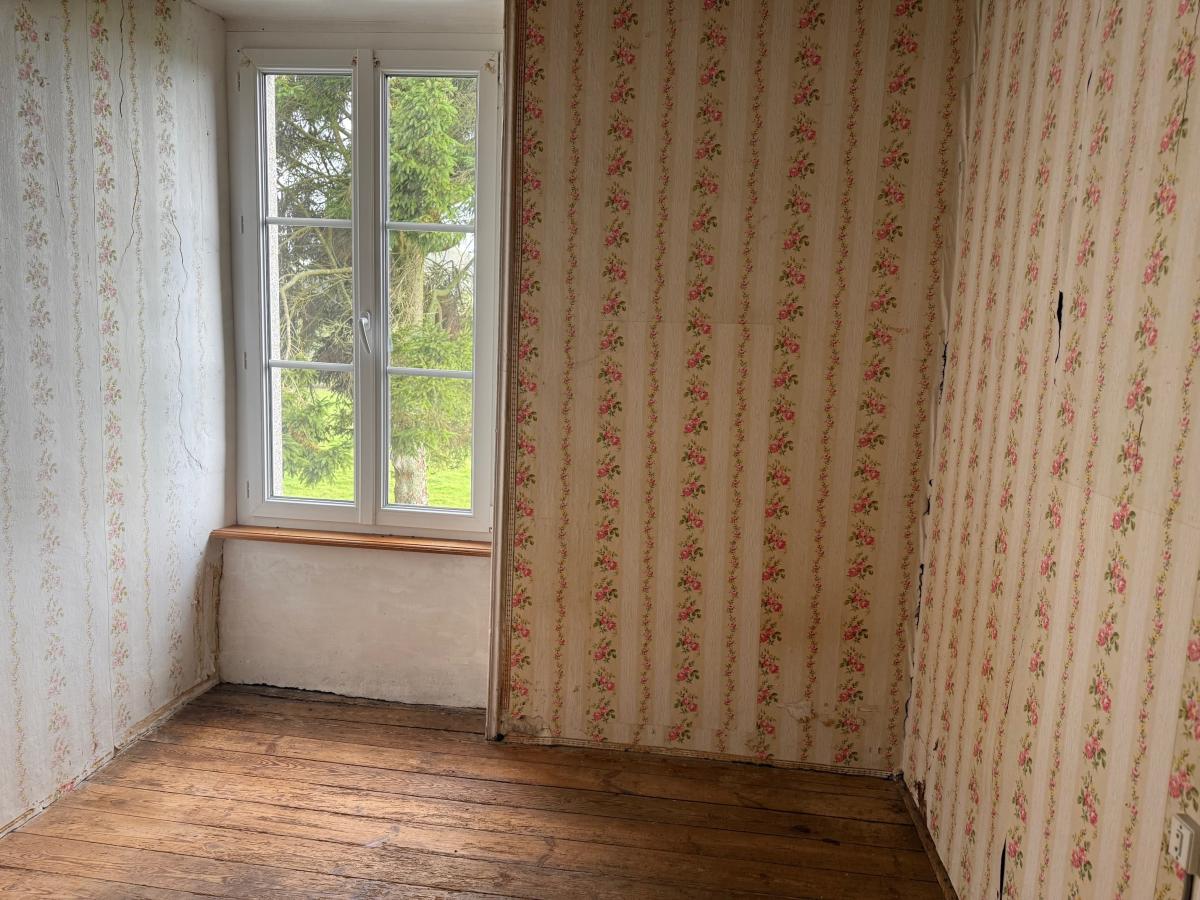 Dans environnement calme et agréable, Maison, à rénover, comprenant : - Rez-de-chaussée : entrée, séjour-salon, cuisine avec cheminée, dégagement, WC ; - Etage : palier, une chambre, bureau ; Grenier. A la suite, hangar, caves. Cour et terrain.