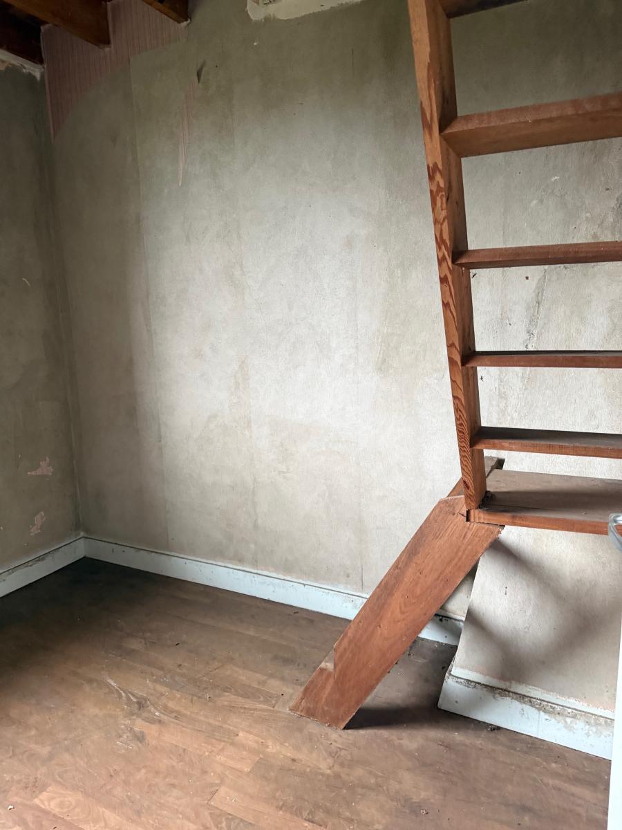 Maison à rénover, comprenant : Rez-de-chaussée: entrée, séjour, cuisine avec cheminée, salon, salle d'eau, WC, cave ; Etage : palier desservant trois chambres. Grenier. A la suite cave et garage. Dépendance à usage d'atelier. Cour, jardin et terrain.