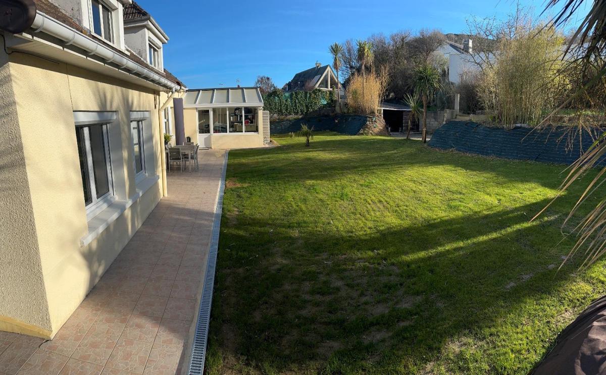 1285n - DIGOSVILLE côté mer; vue imprenable ! maison individuelle de 155 m² sur belle parcelle de 1240m² cette maison des années 60 vous propose un beau volume au rdc: entrée, cuisine 11m², séjour 30m² avec accès terrasse couverte vue mer, salon 20m²; salle de bains, wc et 2 chambres. étage: plateau à aménager sur la totalité selon vos goûts / besoins. cuisine d'été, garage attenant. Très beau jardin aspecté sud avec 2e entrée et cour devant. Les informations sur les risques auxquels ce bien est exposé sont disponibles sur le site Géorisques : www. georisques. gouv. fr Retrouvez toutes nos annonces sur etudenapoleon.notaires.fr