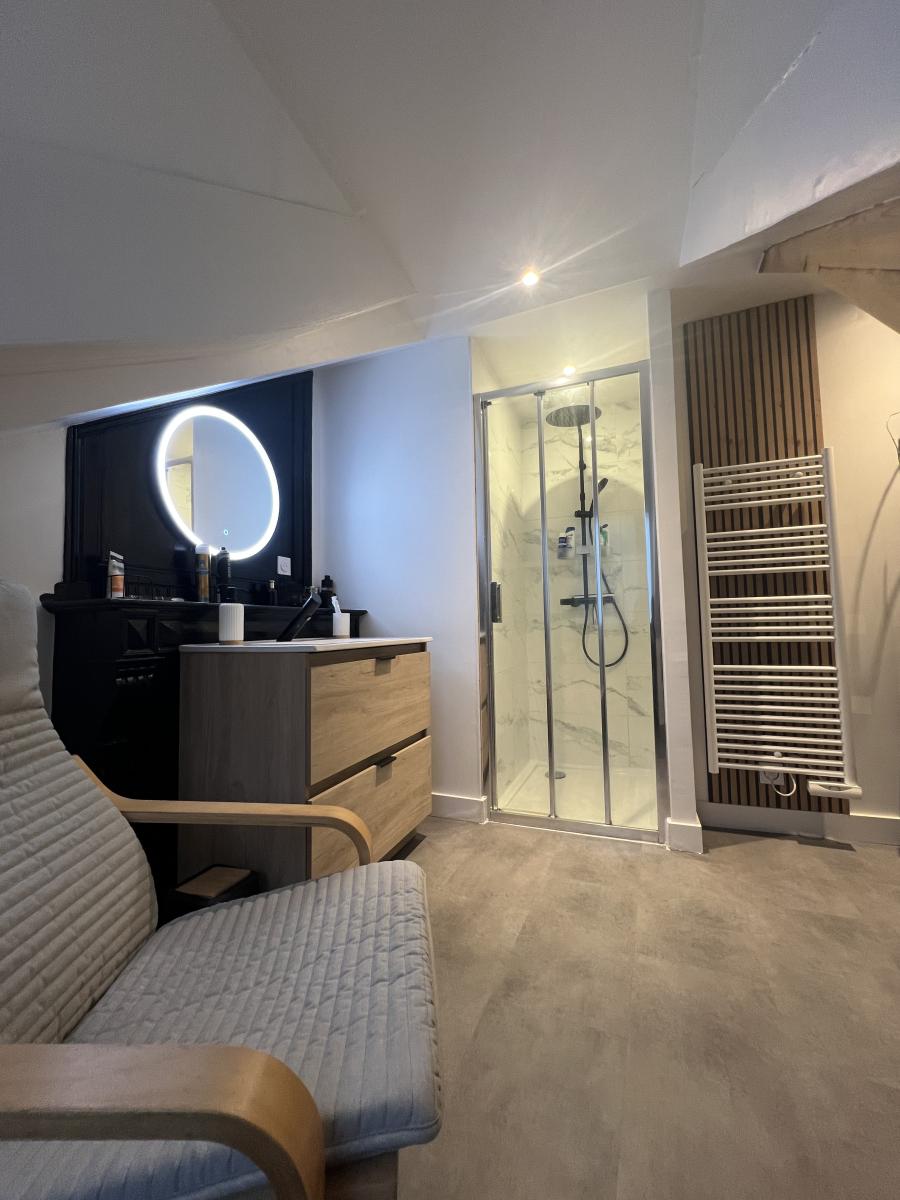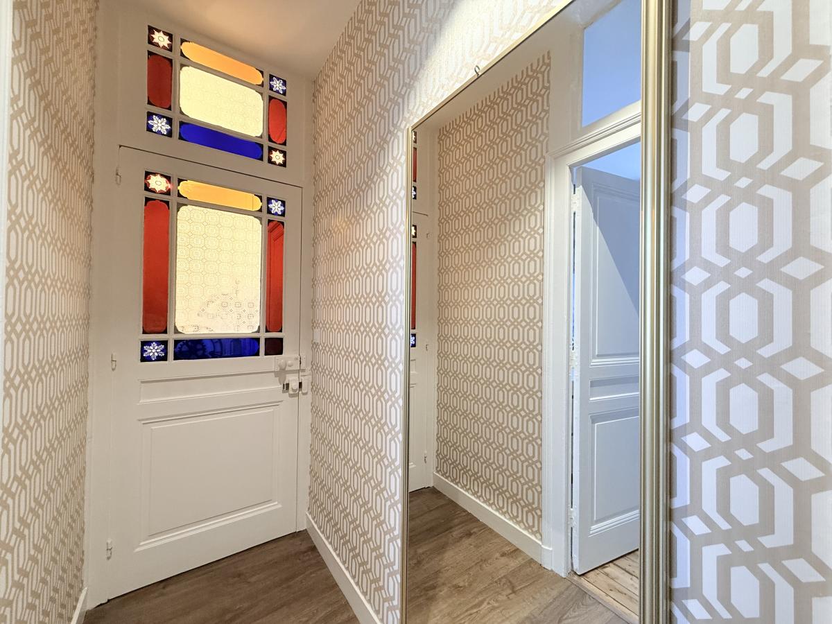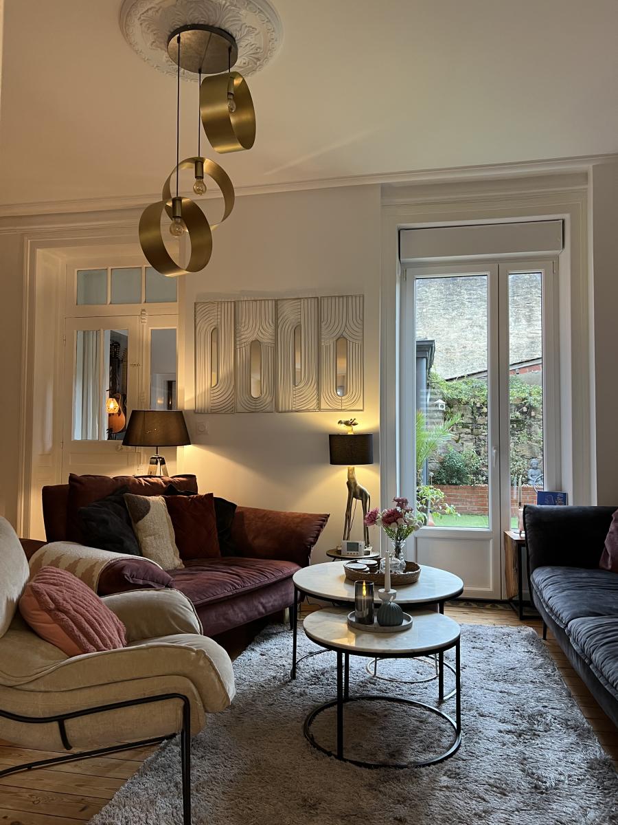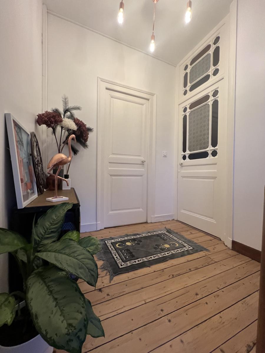 Entièrement repensée par son propriétaire, cette maison respire le bon goût et offre des volumes généreux. L'entrée avec WC indépendants et penderie, met en valeur les matériaux nobles comme les parquets anciens et les belles hauteurs sous plafond.