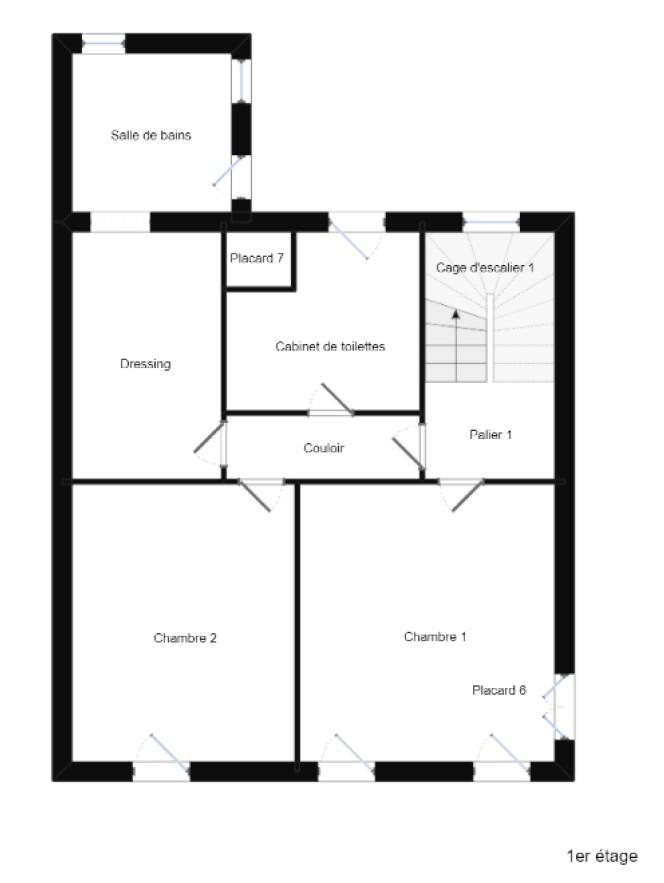 Le premier étage est un cocon parental et familial avec une grande chambre de 16,8m2 et une suite parentale composée d'une chambre de 11,5m2, d'un espace dressing et d'une salle de bains (baignoire et douche à l'italienne), une buanderie et WC.