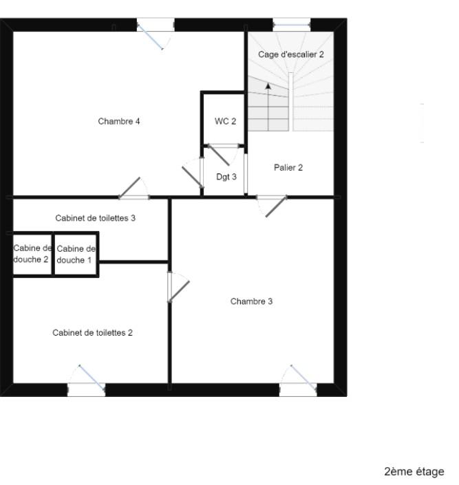 Le deuxième étage offre un espace idéal pour les enfants avec deux chambres dotées chacune d'une salle d'eau et WC indépendants.